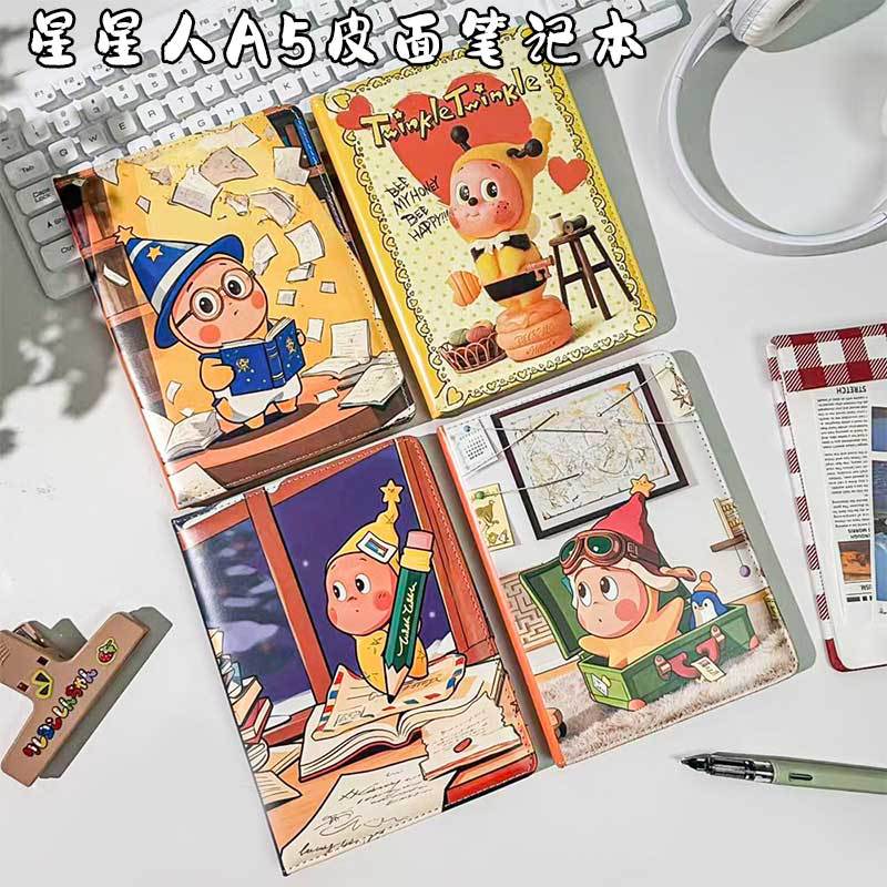 魔法师星星人pu皮面笔记本学生高颜值记事本A5加厚彩页手账本批发