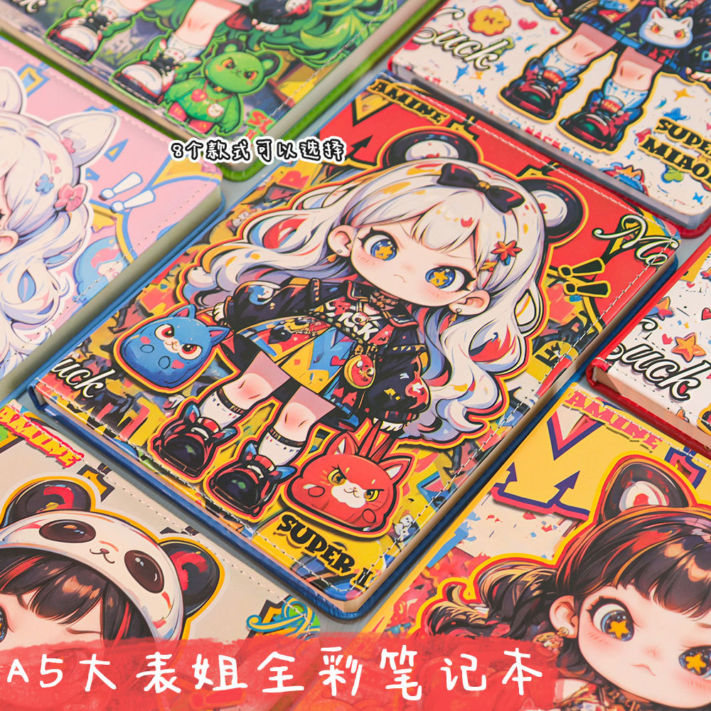 新款大表姐a5笔记本高颜值卡通软皮记事本学生手账彩页本厂家批发