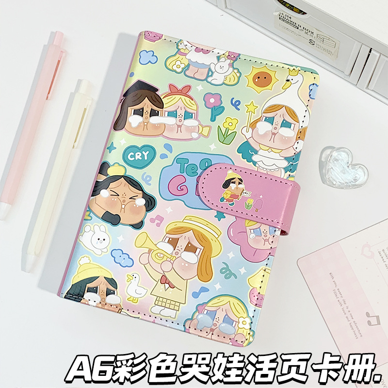 彩色哭娃A6活页卡册可拆卸皮质笔记本空白可爱卡通日记本手账本子