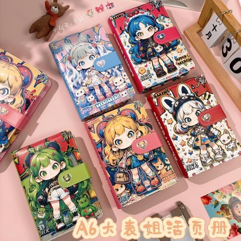 新款国潮风大表姐M5活页本磁扣卡册高颜值卡通pu皮质手账本笔记本