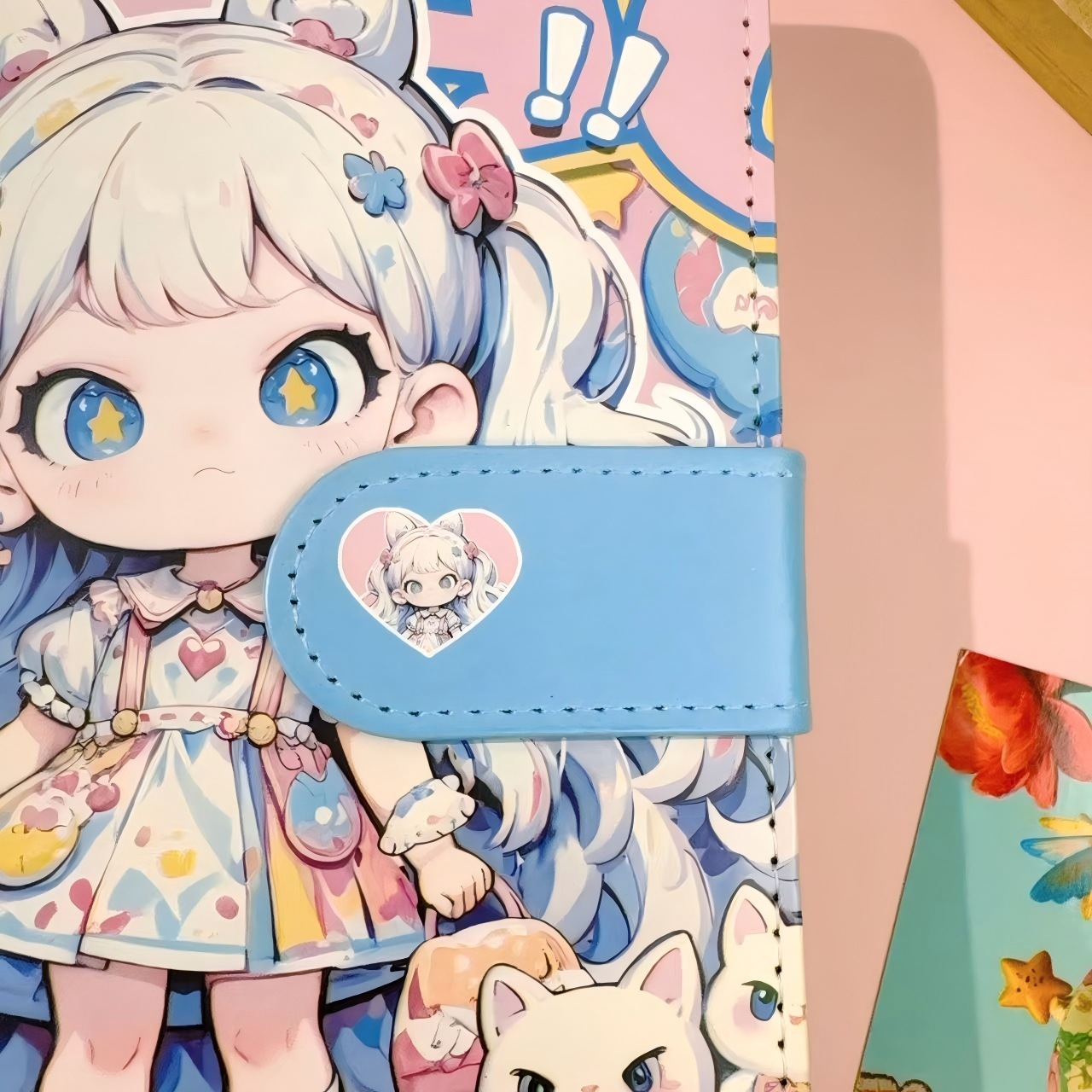 A5花边美少女磁吸彩页手账本可爱pu软皮高颜值动漫日记本批发