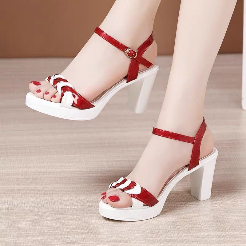 女式高跟粗跟凉鞋女2025夏季新款厚底防水台露趾百搭一字带女凉鞋