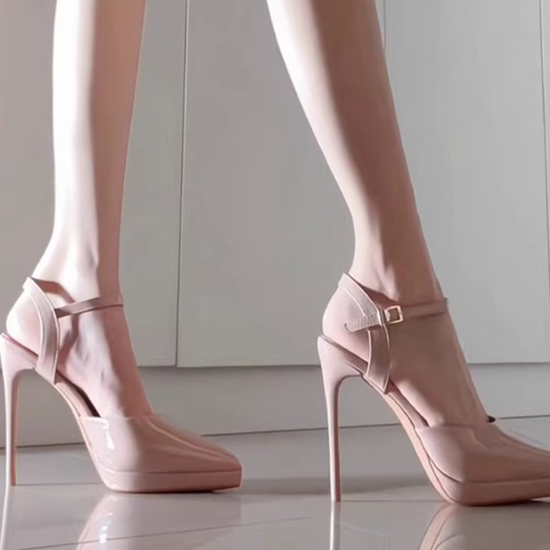 赤底ハイヒール、ファッショナブルで多用途、黒、高級ヌードカラー、新作、個性的なデザイン、超ハイヒール、漆皮パンプス