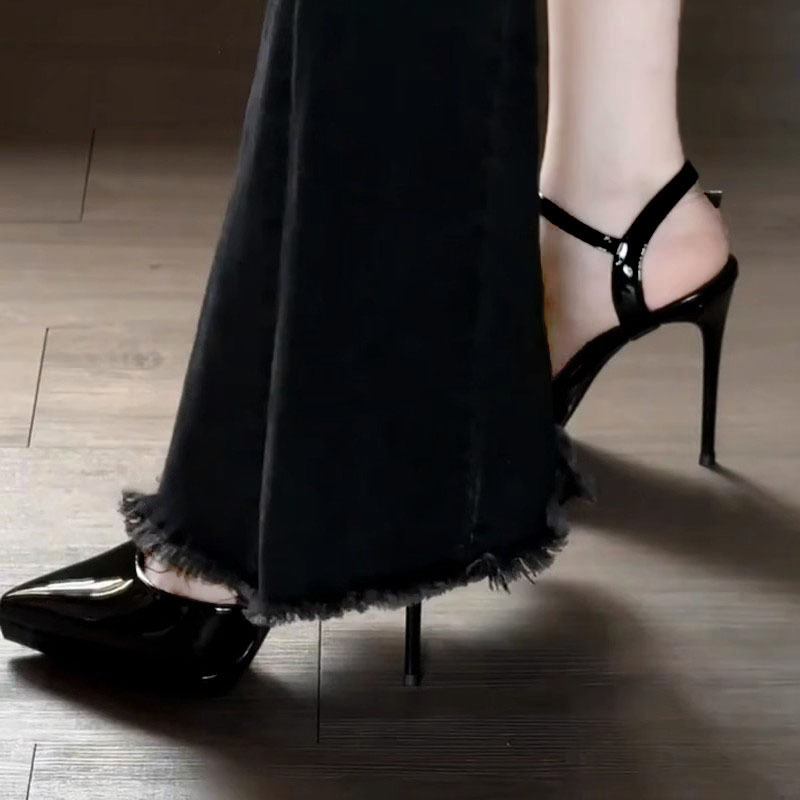 黑色高跟凉鞋女款夏季经典一字带高跟鞋女细跟2025年新款御姐穿搭