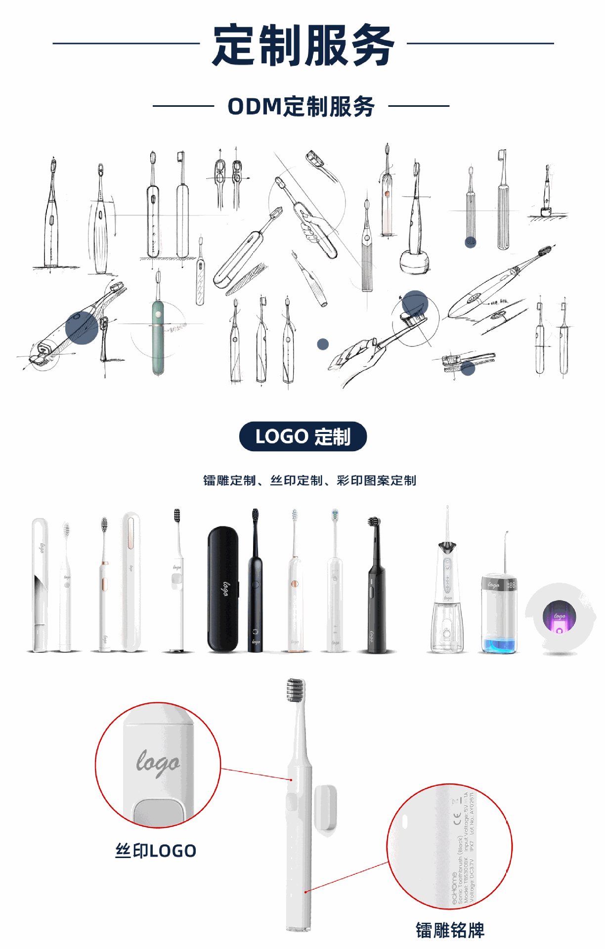 便携式声波电动牙刷 旅行随身 3档清洁模式 IPX7防水 超长续航