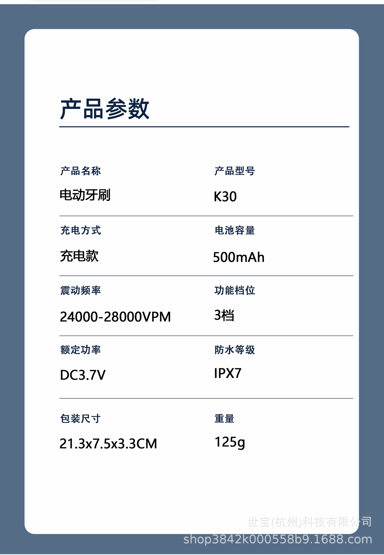 产品规格 主机*1+刷头*8+充电线*1+说明书*1+彩盒包装*1