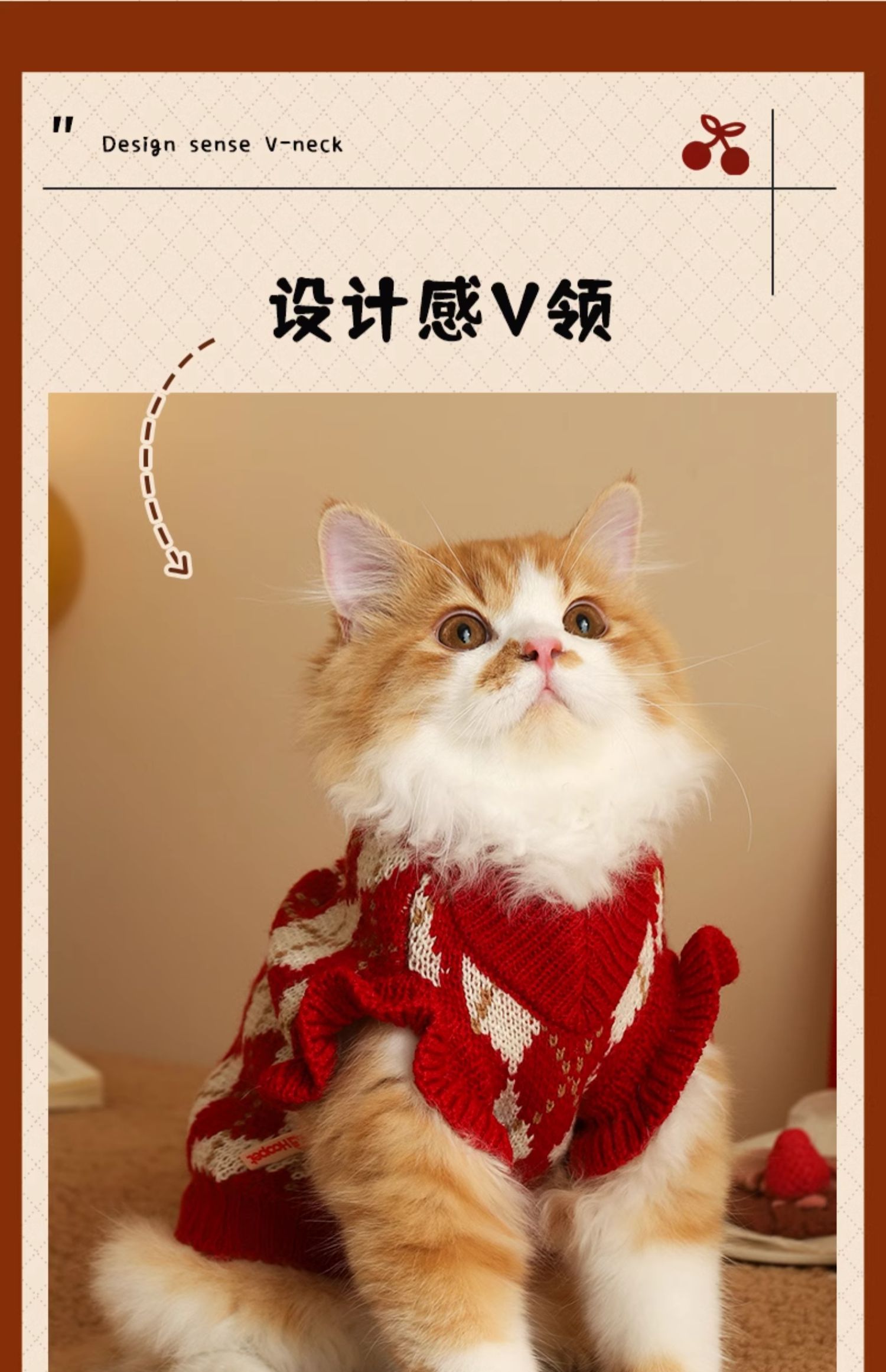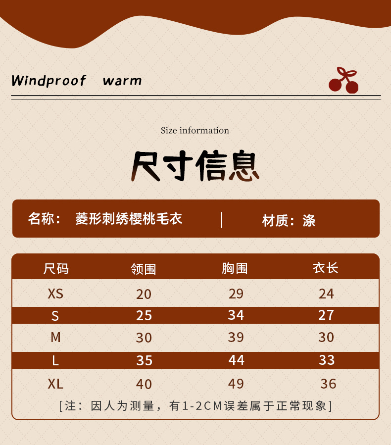【品名】:乐乐猫学院风衬衫领格子毛衣/红色樱桃毛衣(XS/S/M/L/XL)