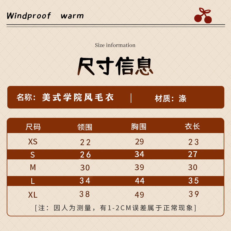 【规格】:美式学院风毛衣XS:22*29*23 cm / S:26*34*27 cm /