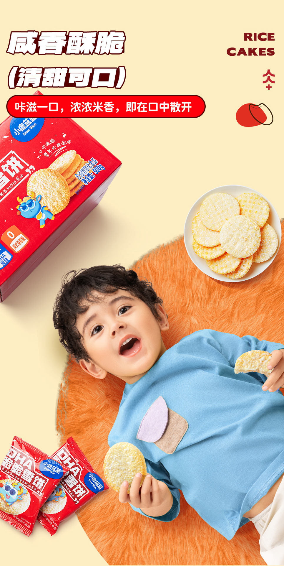 DHA脆脆雪饼】0反式脂肪酸米饼磨牙饼干儿童零食品牌
