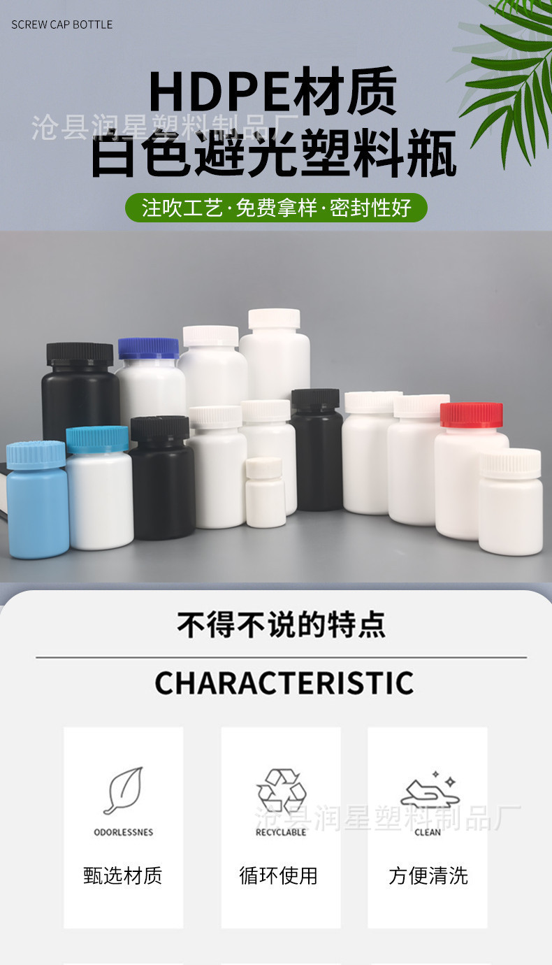 现货hdpe塑料瓶塑料保健品瓶子广口瓶胶囊瓶钙片固体分装罐小药瓶