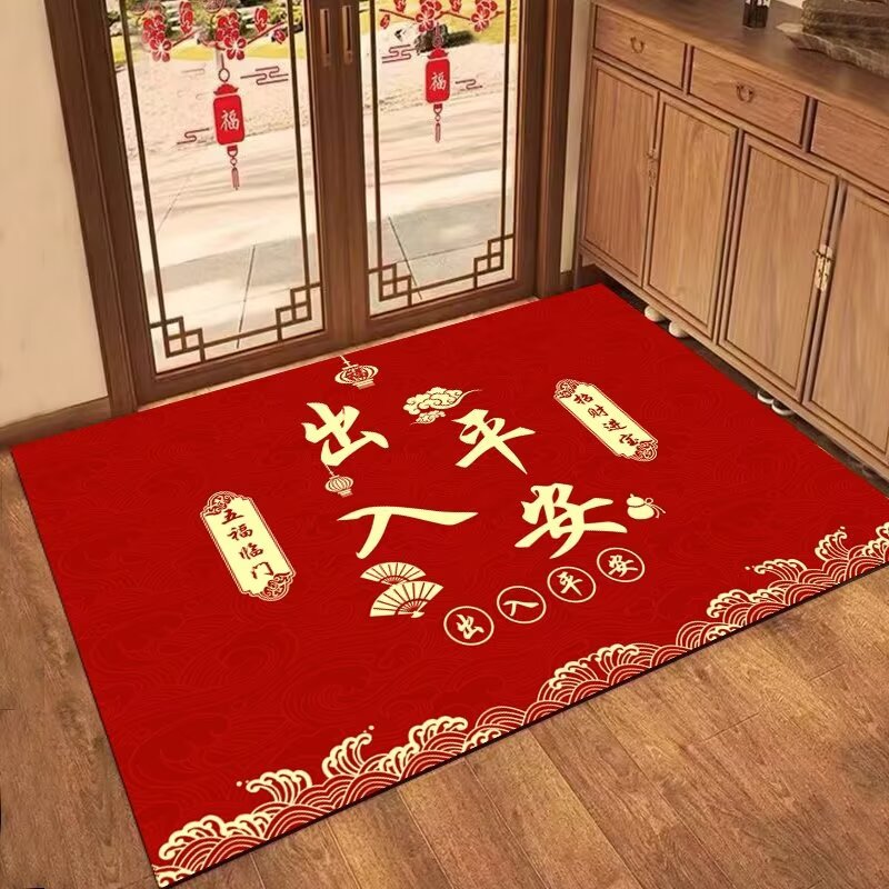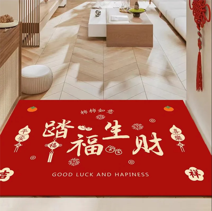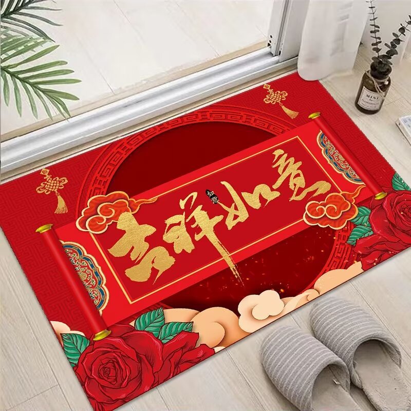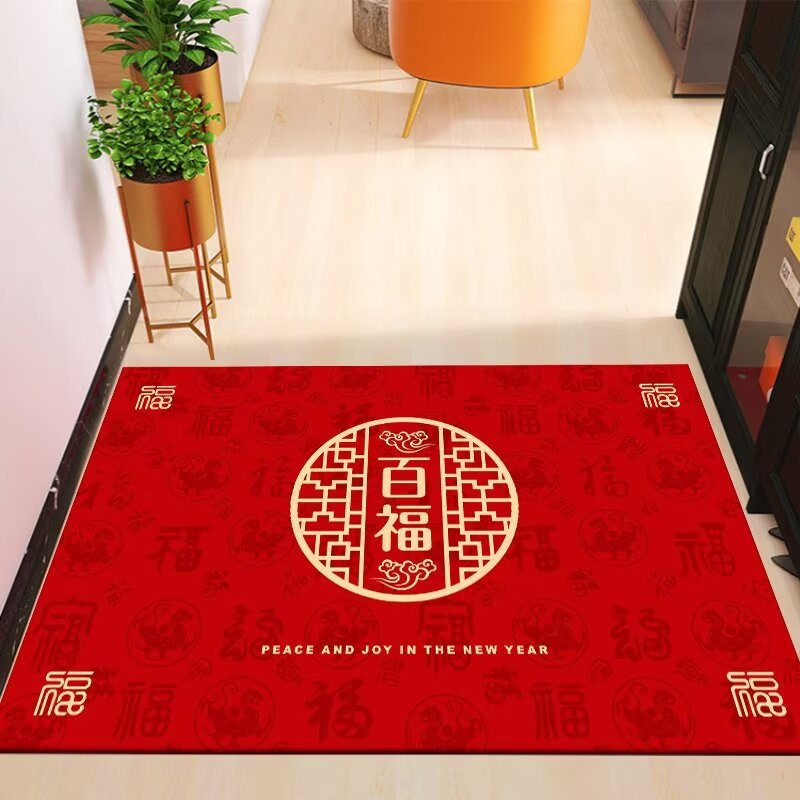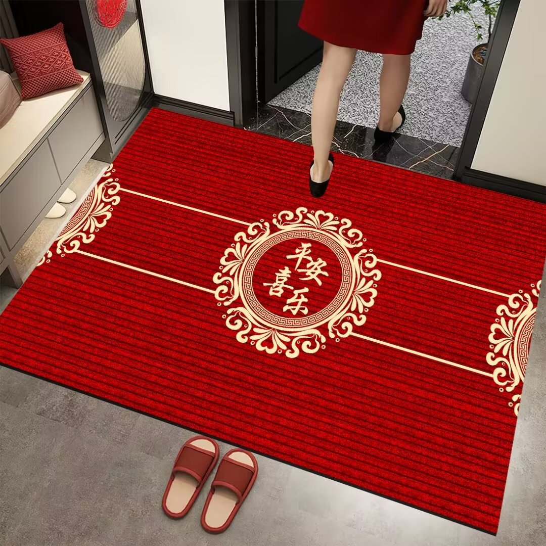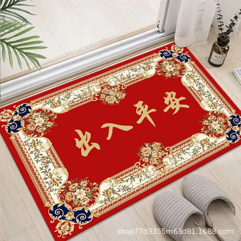 中式入户门地垫加厚水晶绒脚垫耐脏易打理新年红色防滑垫一件代发