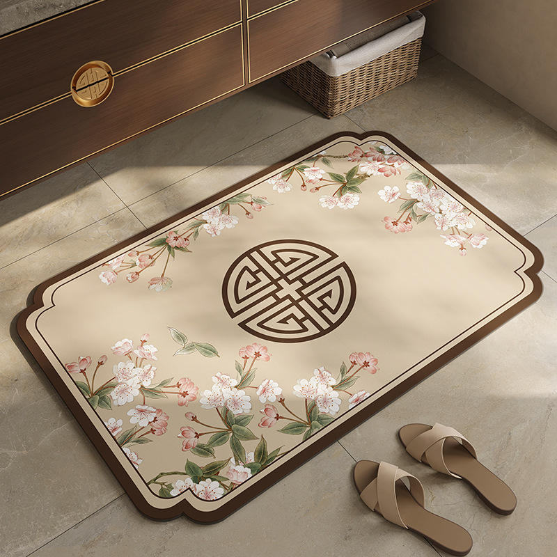 珪藻土フロアマット、中国風の古典的な吸水性滑り止めバスルームフロアマット、耐摩耗性と汚れ防止の玄関ドアフロアマット、お手入れが簡単