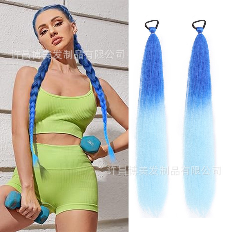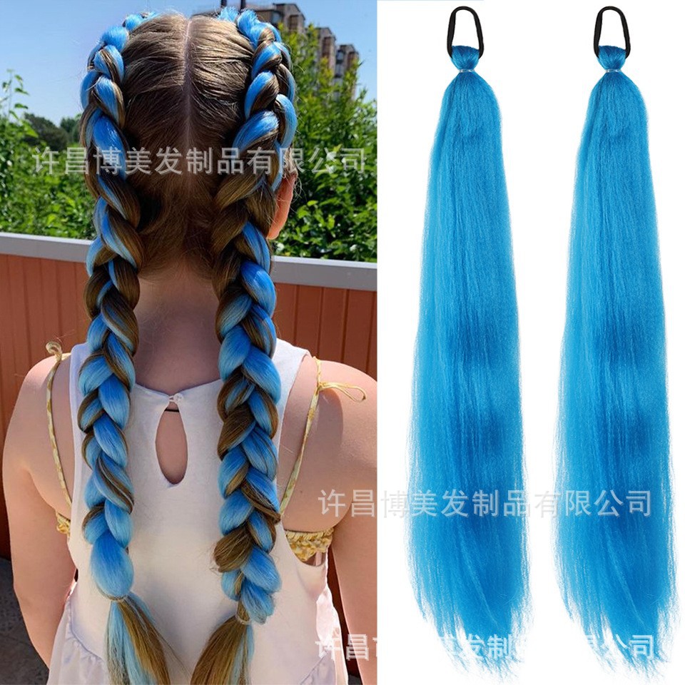 単一パックの化学繊維ウィッグカラーポニーテールゴムバンドボクシング三つ編みは、カラフルな三つ編みポニーテールヘアエクステンションで編むことができます
