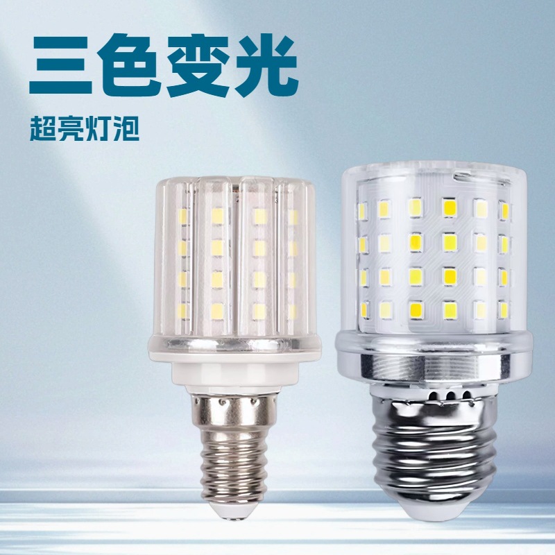 新型ワイド圧クロスボーダートウモロコシランプe14e12e27電球三色変光ledランプハイライト