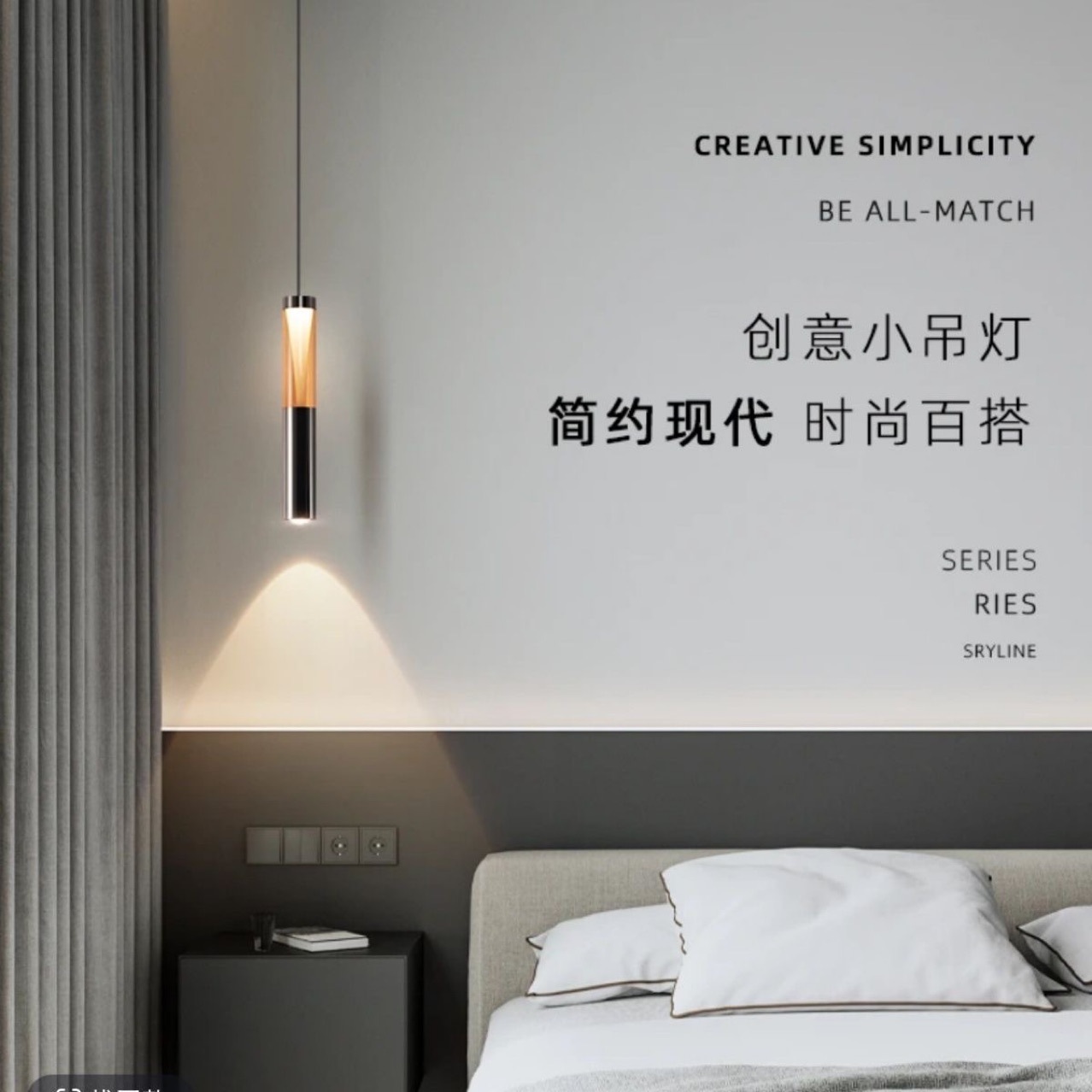 床头小吊灯现代简约客厅背景墙雪山氛围感卧室床头灯极简吊线灯