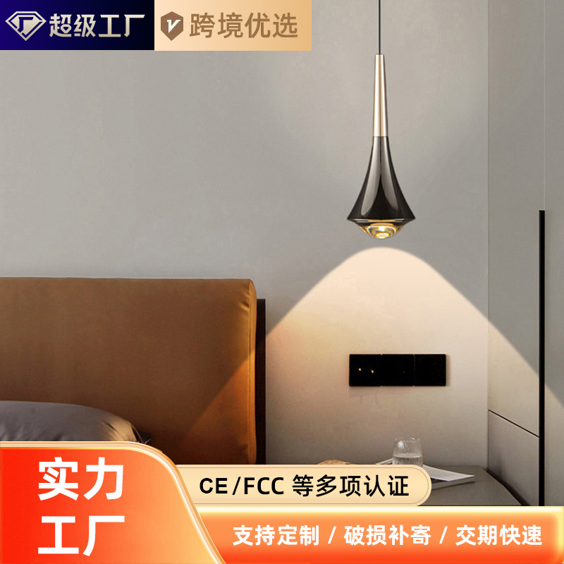 新款卧室床头吊灯极简意式个性创意设计感餐厅吧台小吊线灯可升降