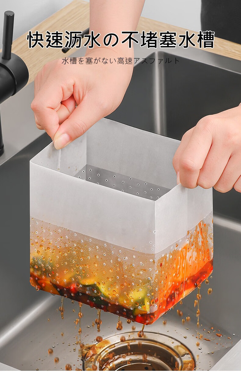 ゴミ袋水切り袋台所自立式フィルター残渣使い捨て水槽水切り袋を厚くして目詰まりを防止する