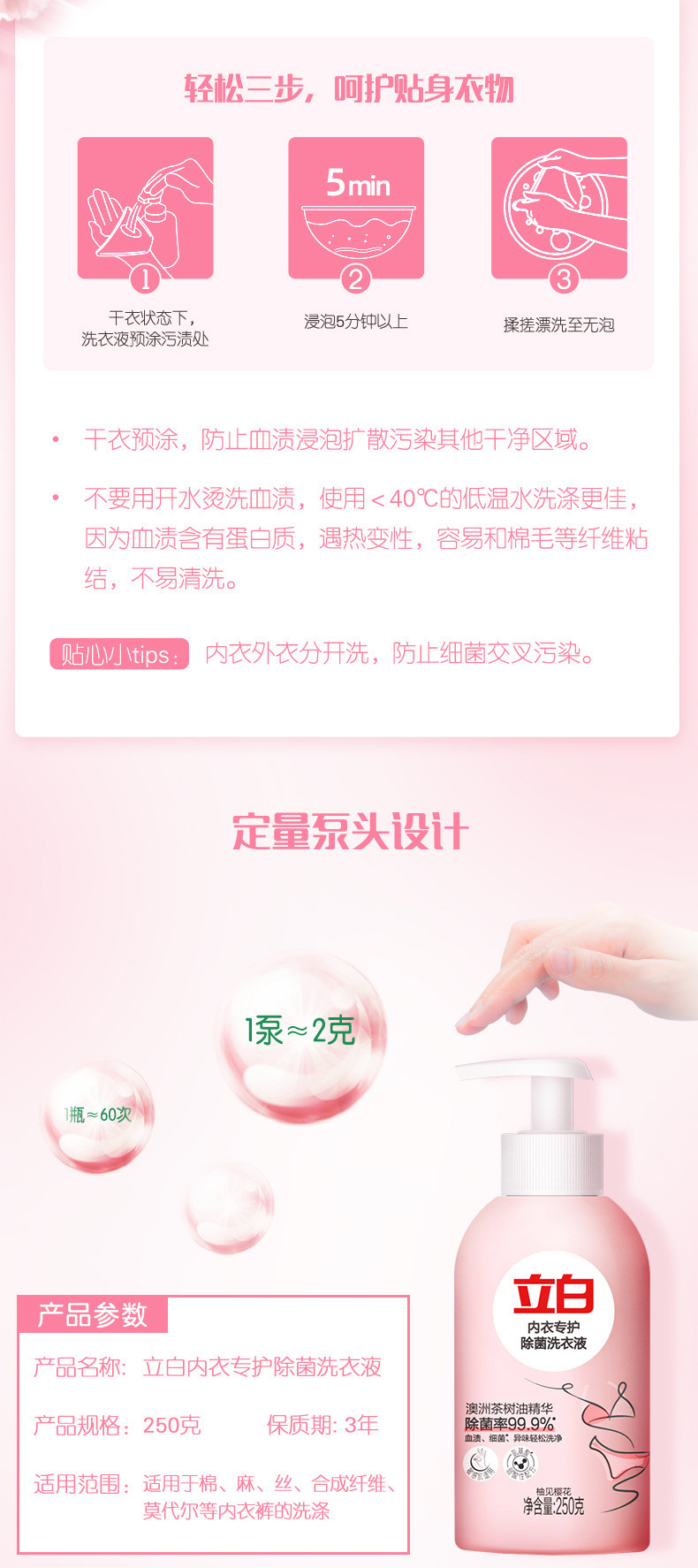 立白内衣洗衣液内衣内裤清洗液量批家用天然洁净除菌抑菌厂家批发