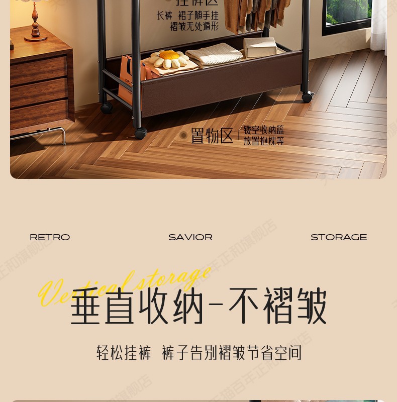 中古風コートラック床置き移動多機能ハンガー収納棚寝室家庭用ハンガー