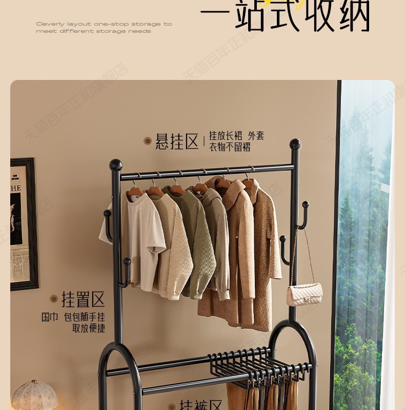 衣帽架落地卧室家用挂衣架多功能置物架挂衣架落地卧室家用挂衣架