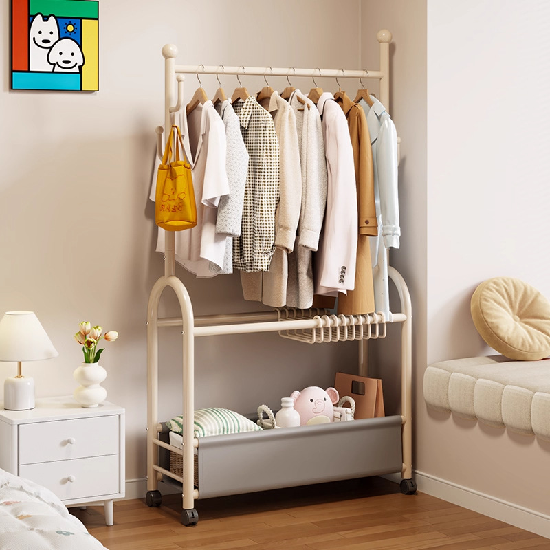 简易衣架落地衣帽架卧室家用整理收纳置物一体可移动多功能挂衣架