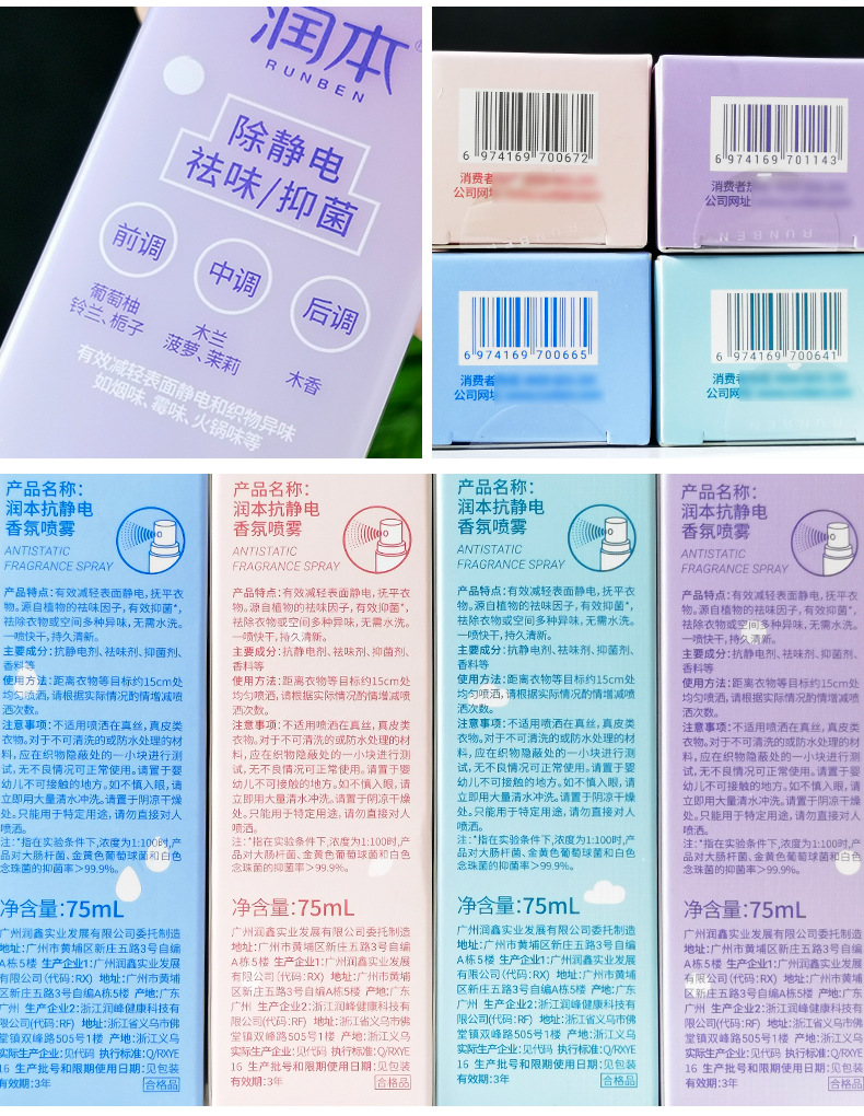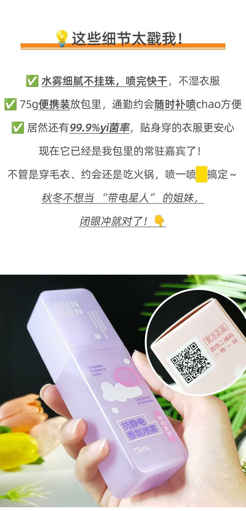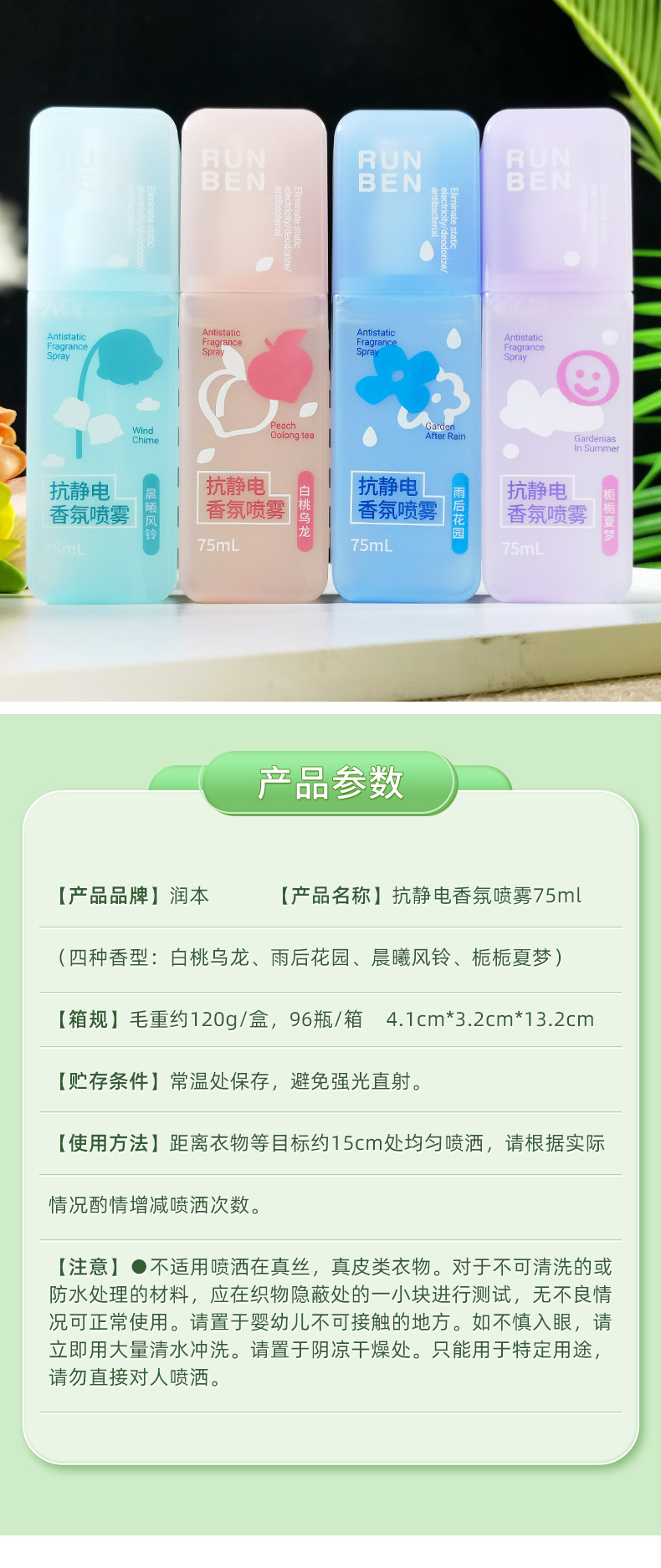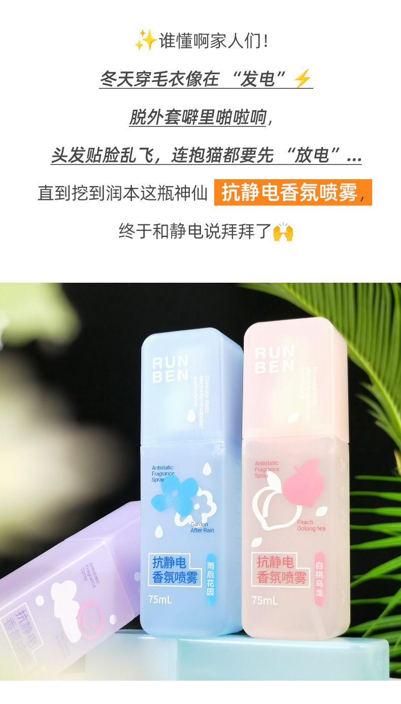 润本抗静电香氛喷雾衣服祛除异味去静电头发毛衣抑菌衣物防静电