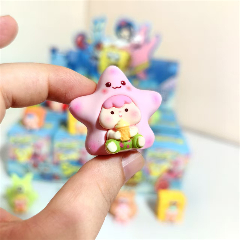 新款海绵宝宝萌粒盲盒派大星章鱼哥潮玩手办公仔树脂小玩偶摆件