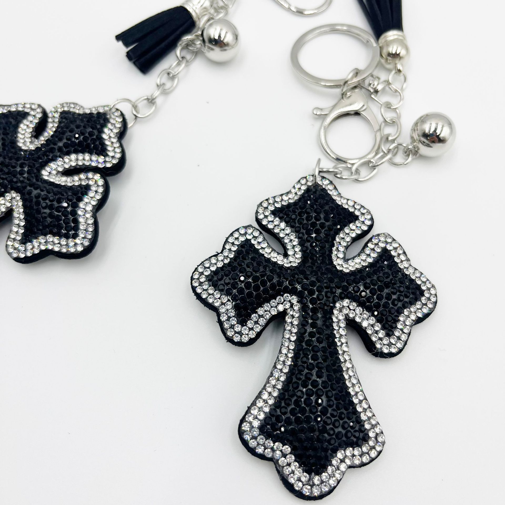跨境镶钻十字架钥匙扣创意韩国绒钥匙链包包挂饰TK热销挂件饰品厂
