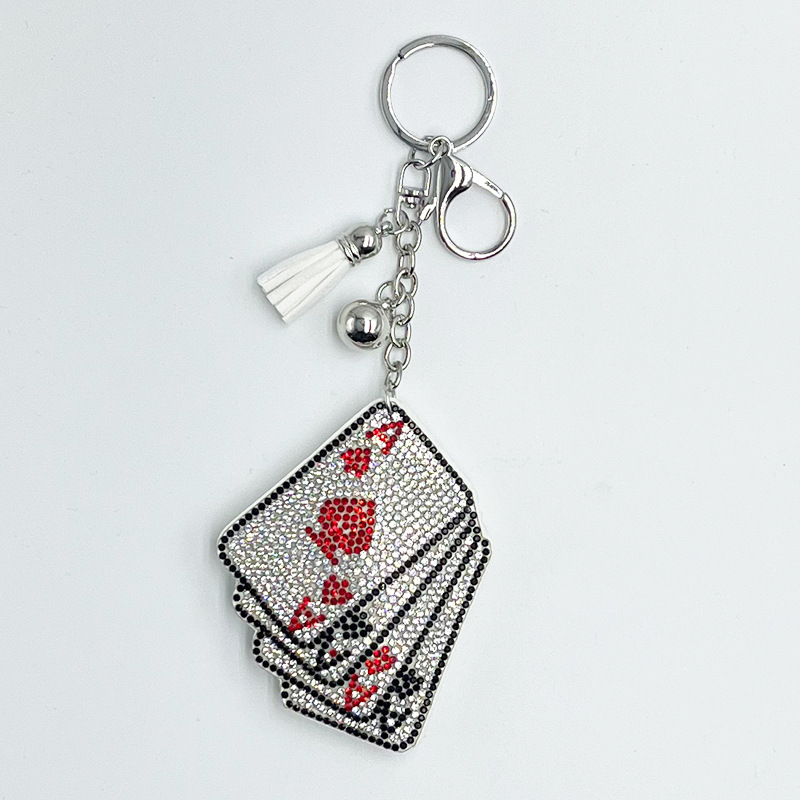 烫钻扑克牌钥匙扣镶钻流苏挂件小香风包包汽车饰品挂饰