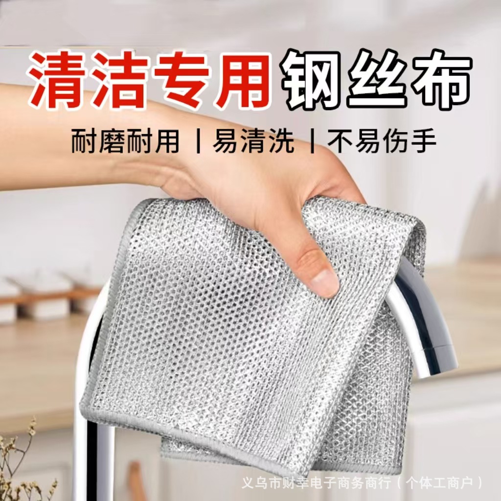 多层加厚银丝清洁洗碗布家用双面网格抹布钢丝灶台速干洗碗抹布