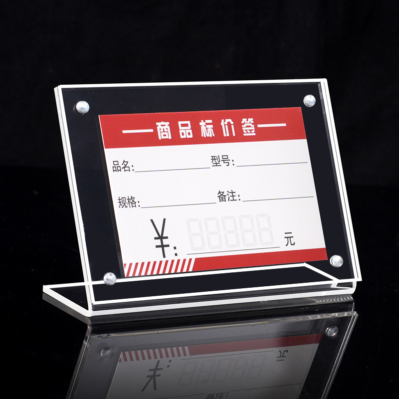 透明L字型表示カードスタンドテーブルラベルアクリル商品値札ラック値札プラスチック棚ラベルラック