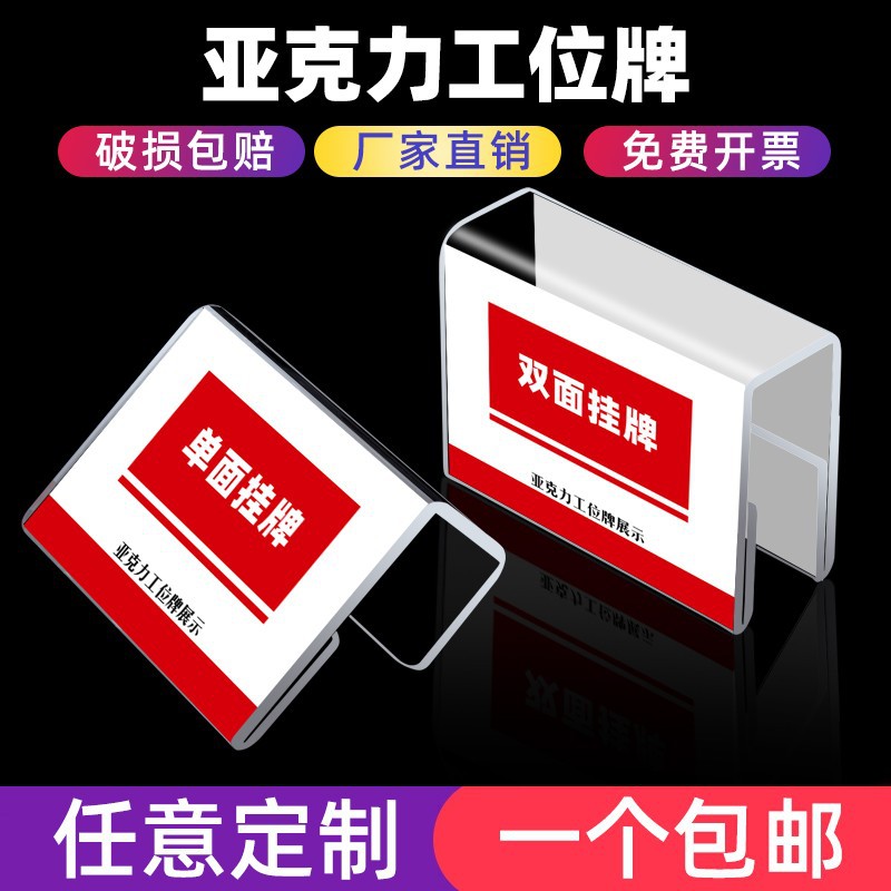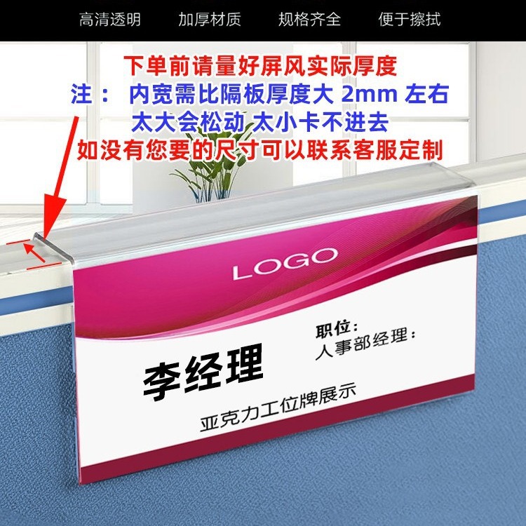 3mm両面アクリル製ワークステーション名札、粘着式仕切り板名札、名前・職位カスタマイズ、裏面粘着タイプ