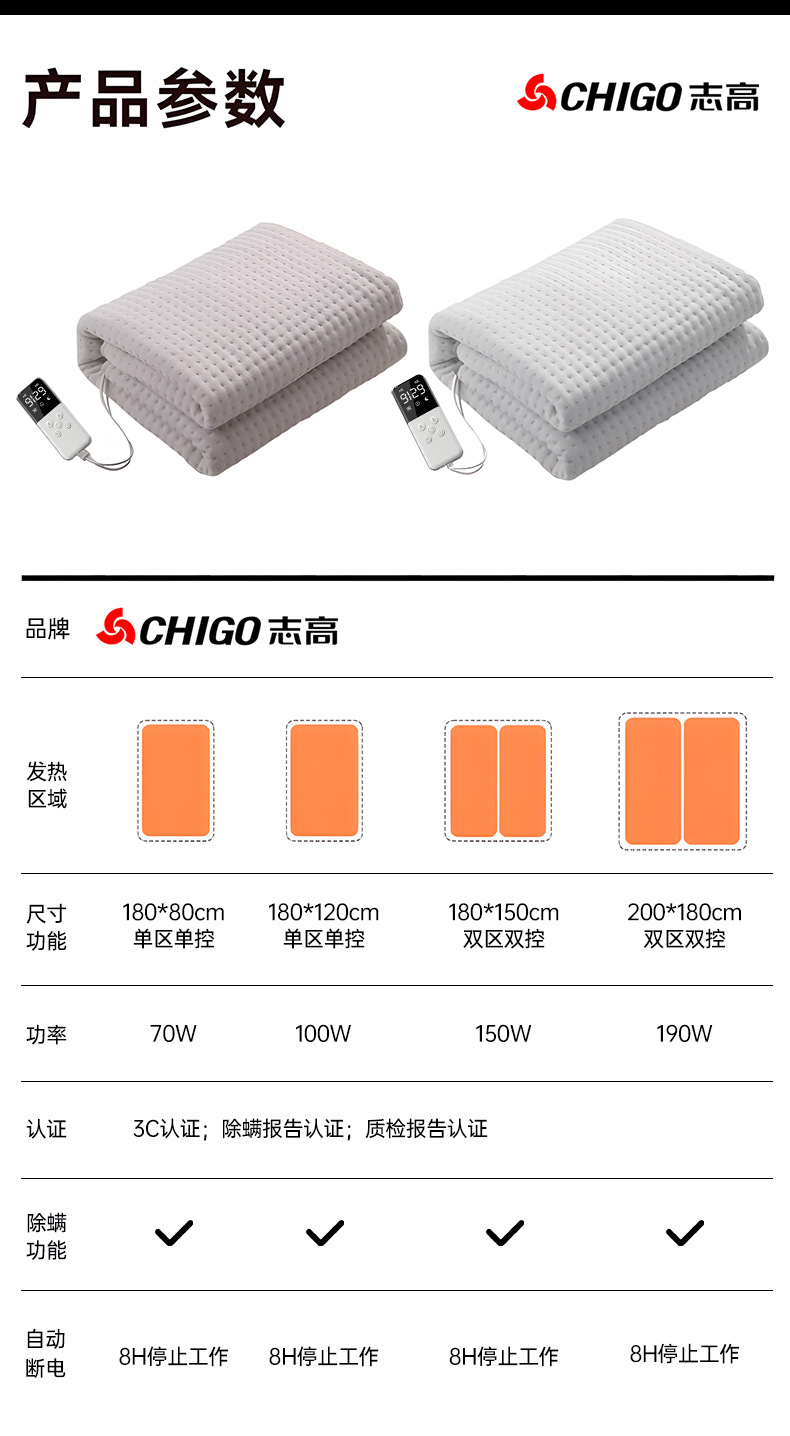 志高电热毯3c认证家用双人双控调温加热毯学生宿舍单人新款电褥子