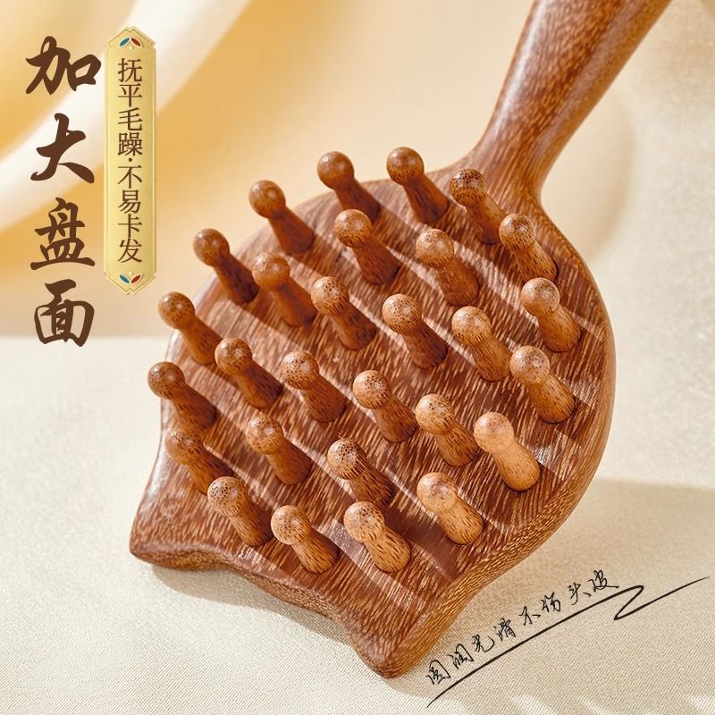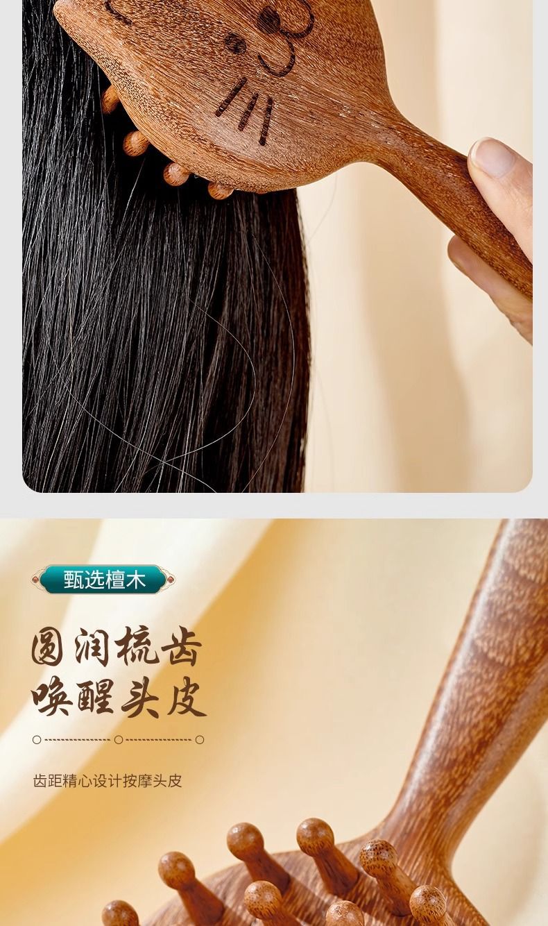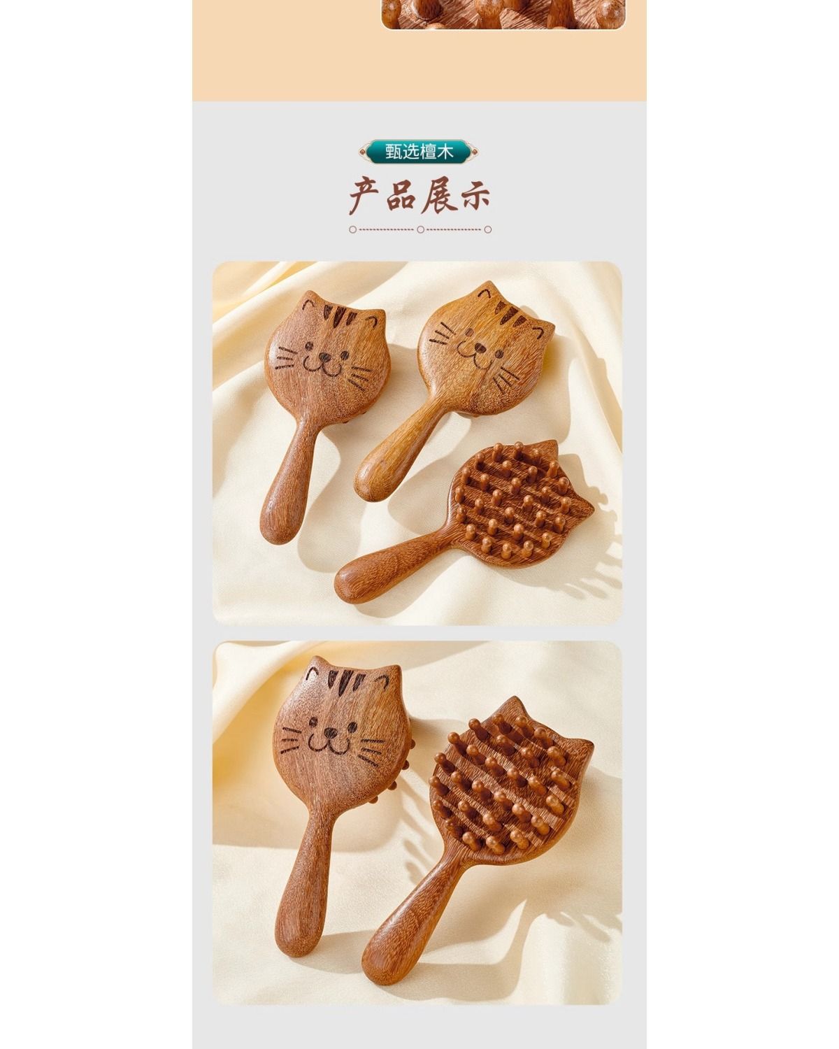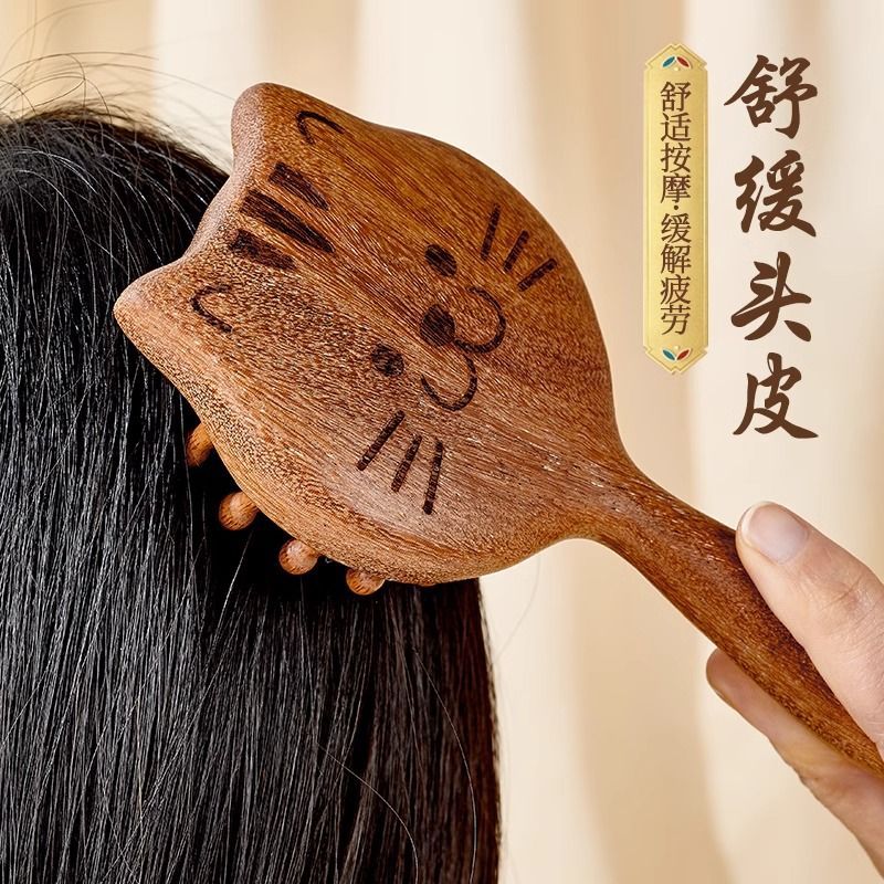 小猫钉钉梳头皮按摩梳头部经络梳檀木按摩梳子小猫插齿梳粗齿宽齿
