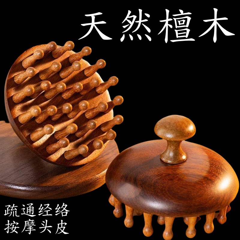 高端檀木圆盘按摩梳头部头皮经络梳毛囊疏通神器养发保健梳子通用