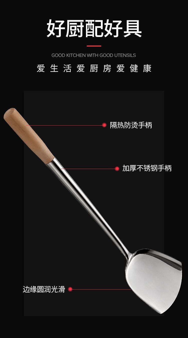 加厚不锈钢锅铲木柄炒勺炒菜铲子勺子长柄大号厨师专用勺饭店手勺