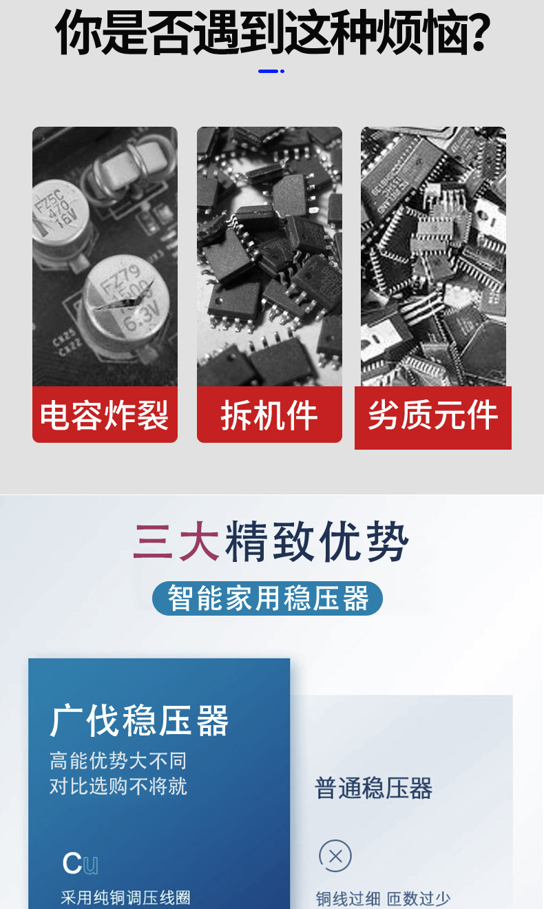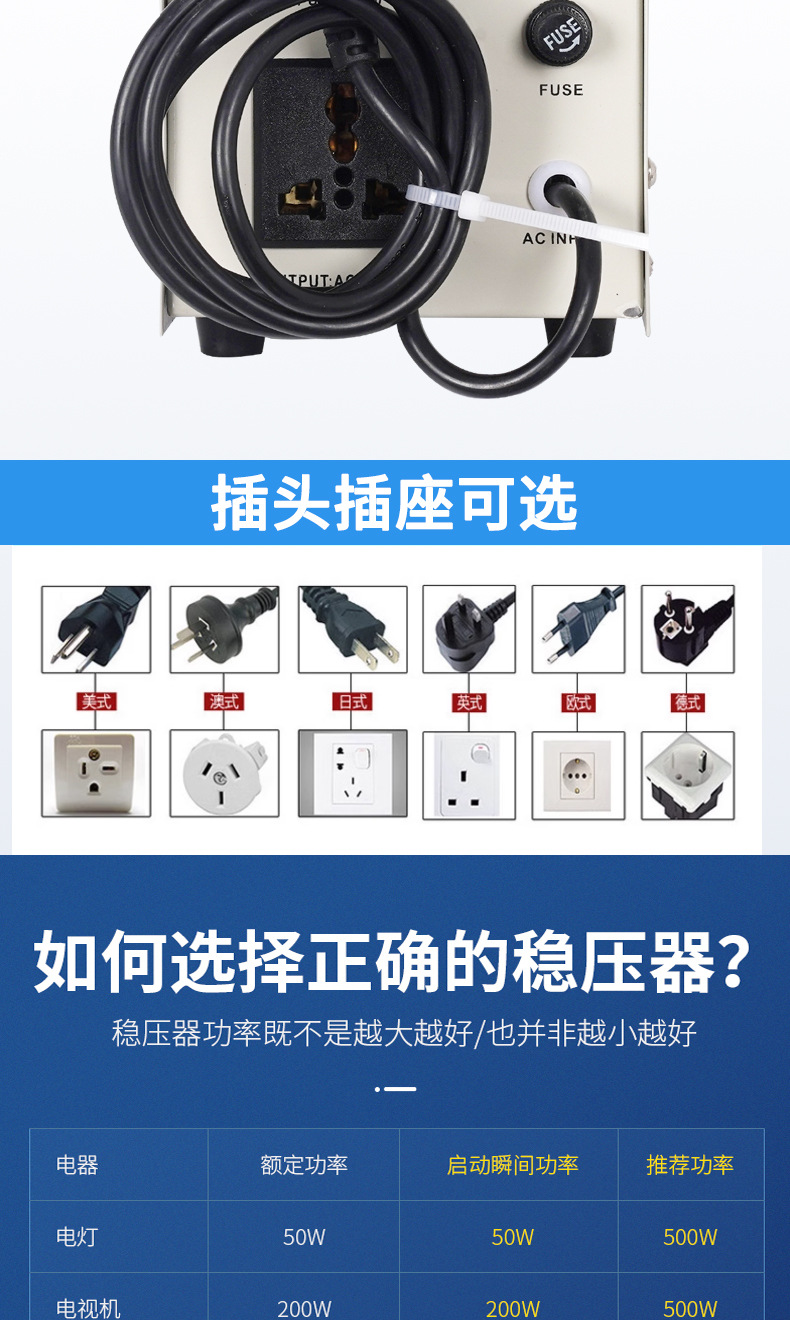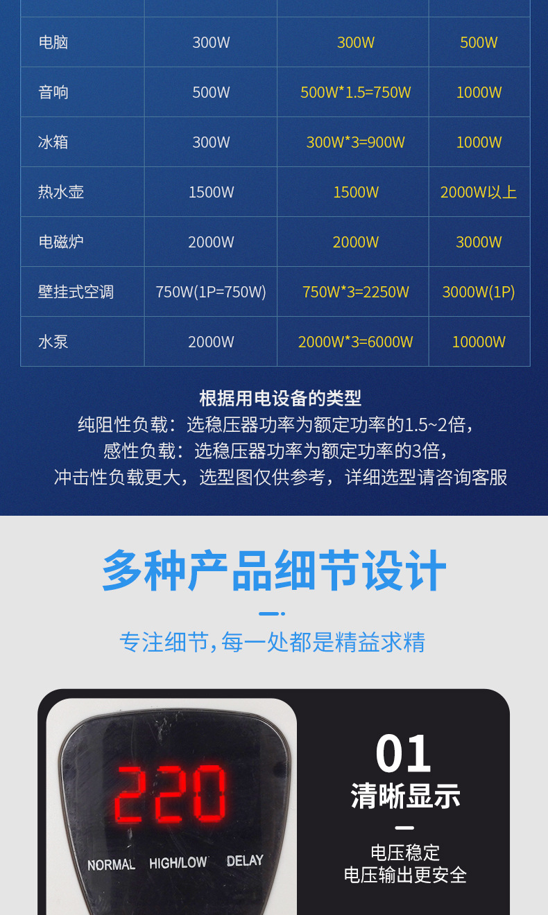 広伐単相安定器SVC-1000VA全自動220v大電力家庭用輸出交流安定化電源