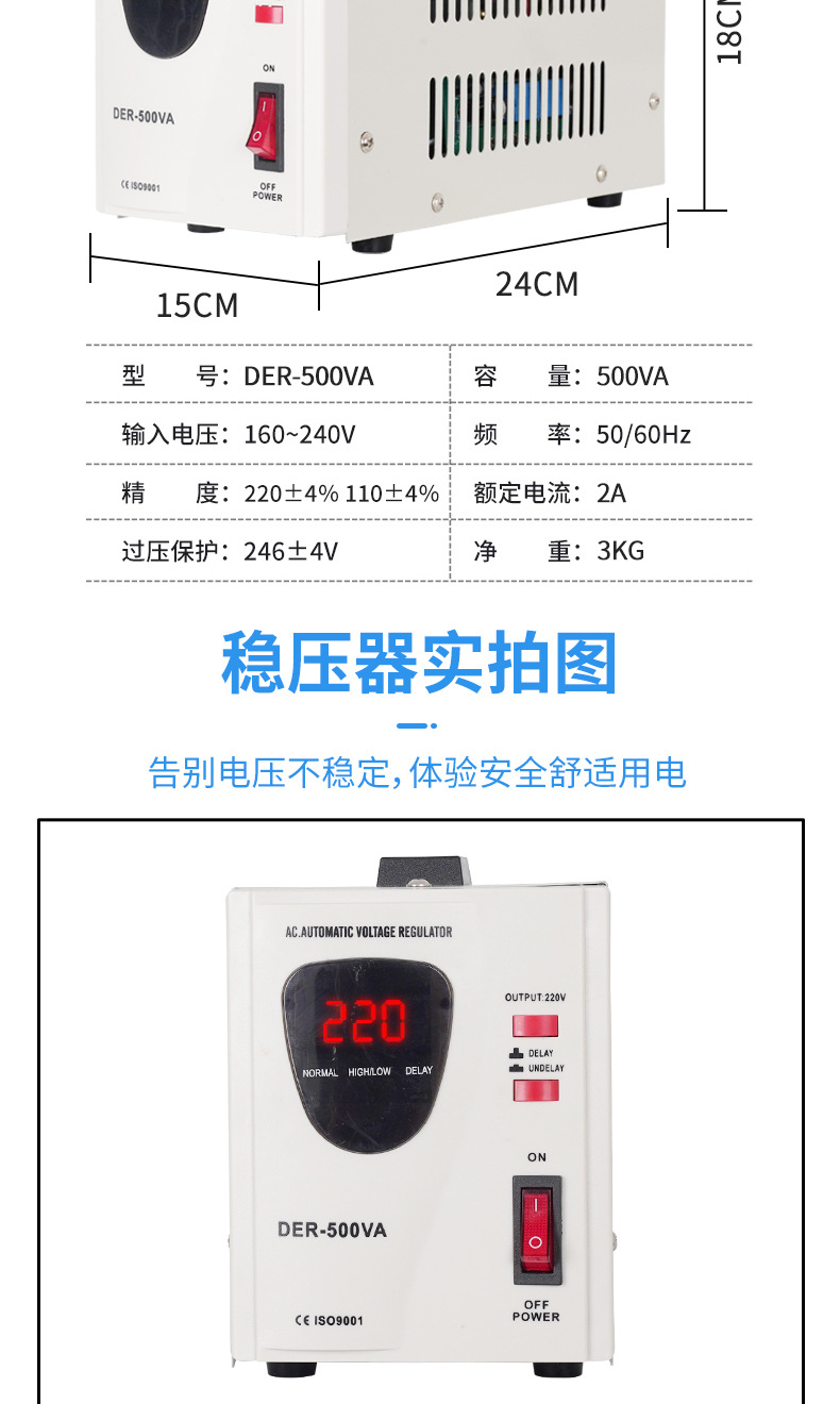 广伐DER电子式稳压器220V家用LED屏500W1000W出口外贸稳压电源