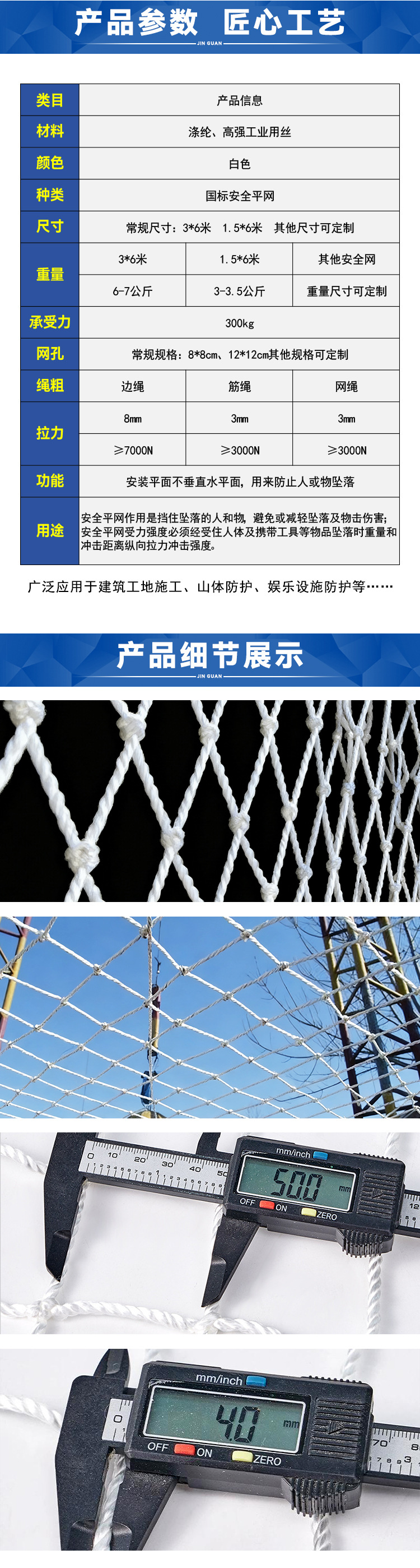 白色工事現場保護ネット、鋼構造平網、高所保護ネット、現場囲いネット、隔離ネット、水平ネット、白ネット