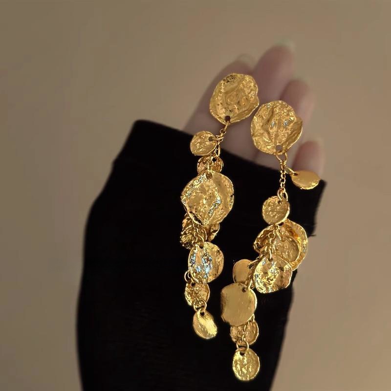 軽豪華気質流蘇イヤリング2025新型百合金属多層リングピアス小衆デザイン感耳飾り女