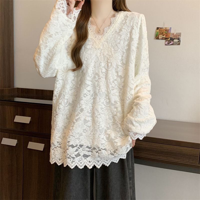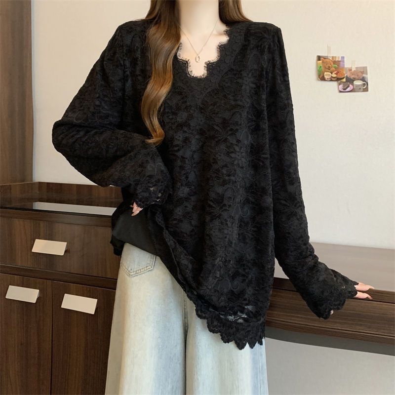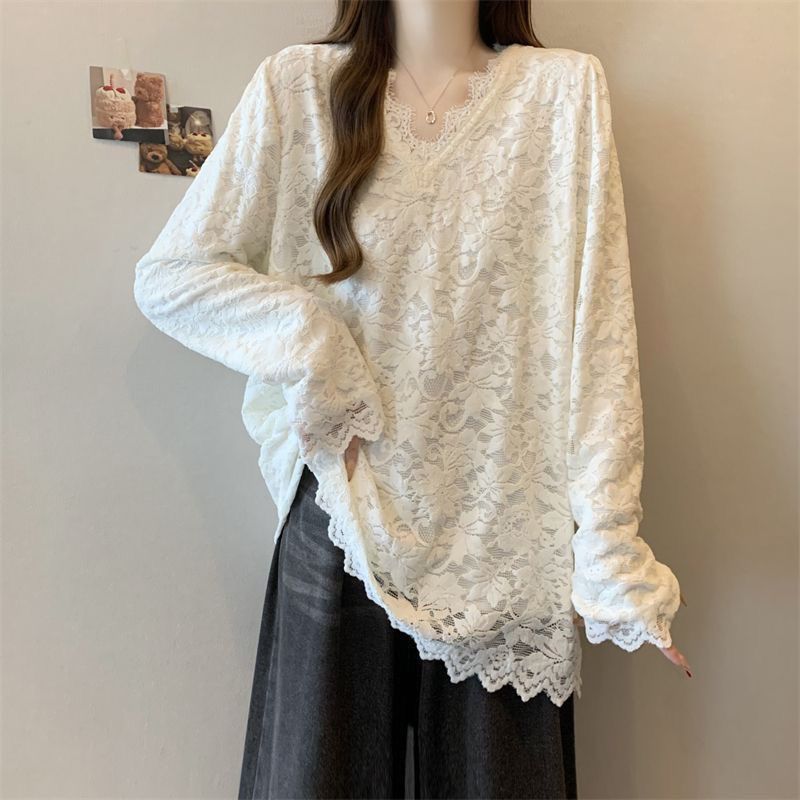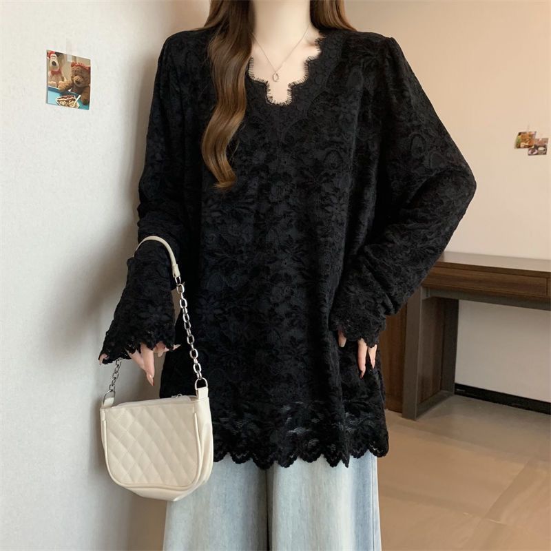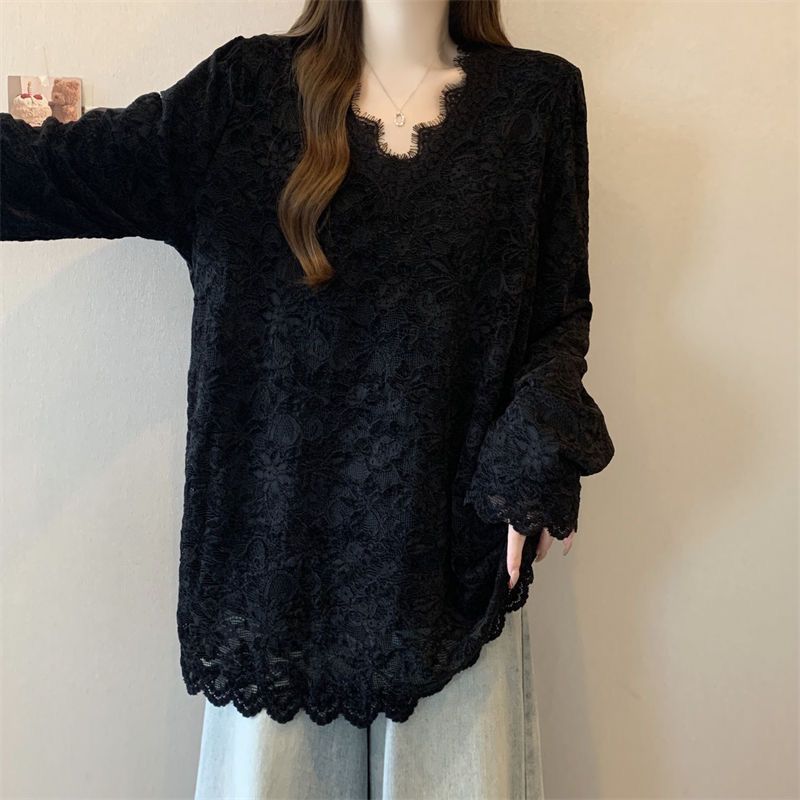 法式气质蕾丝秋季2025新款秋冬加绒宽松大码洋气别致上衣打底磨毛
