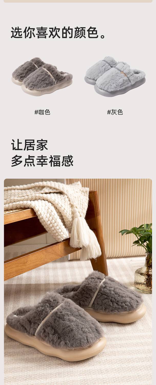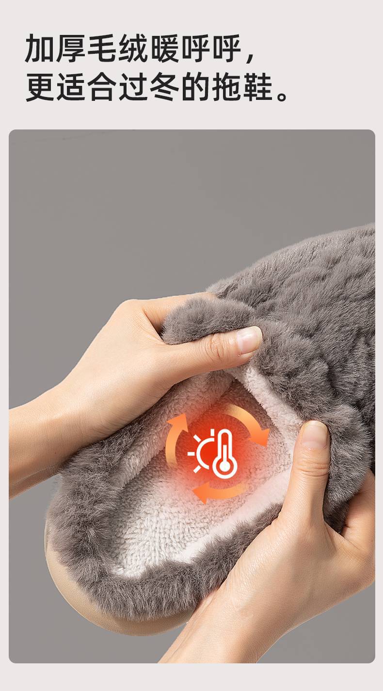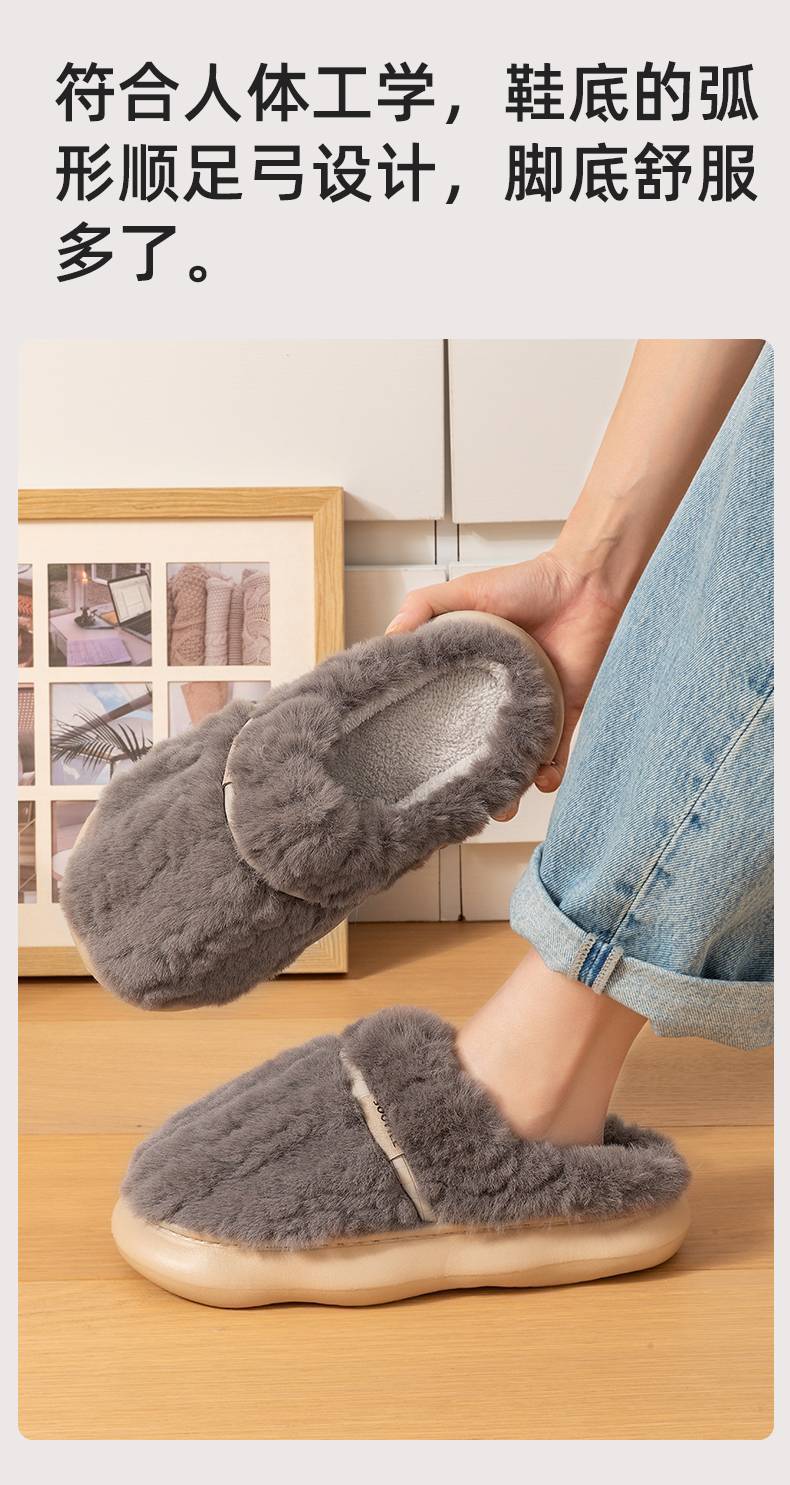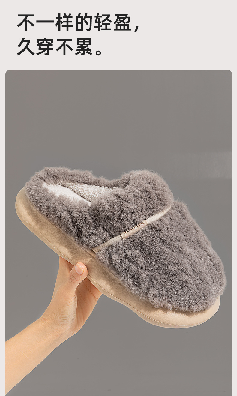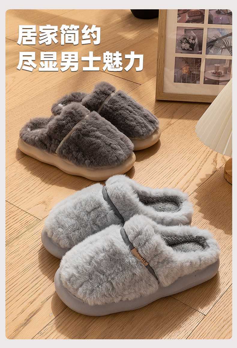 厚底棉拖鞋男士冬季新款情侣家居室内保暖加绒加厚踩屎感毛绒拖鞋