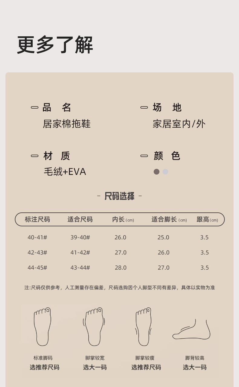 尺码 36-37(适合35-36脚穿),38-39(适合37-38脚穿),40-41(适合39-40脚穿),42-43(适合41-42脚穿),44-45(适合43-44脚穿)