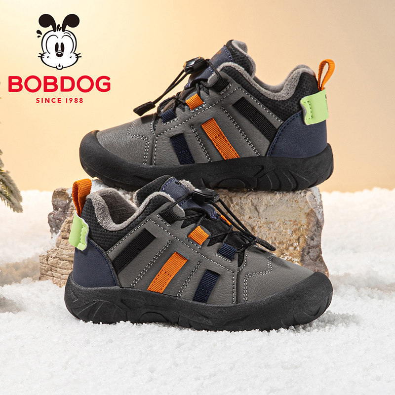 巴布豆童鞋官方儿童加绒鞋冬季男大童加厚二棉鞋男孩防滑款运动鞋