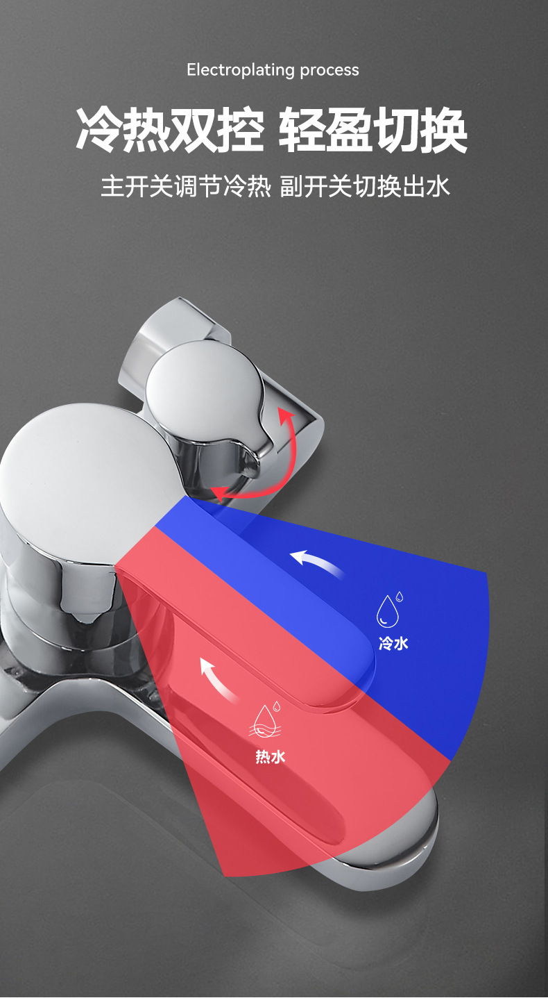 全铜混水阀冷热水龙头双开三联浴室卫生间洗澡二合一淋浴花洒开关