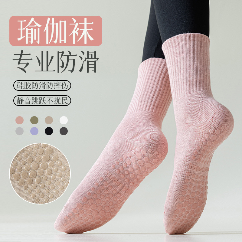 瑜伽袜子女士四季款中筒袜普拉提长筒袜专业防滑运动袜纯色地板袜