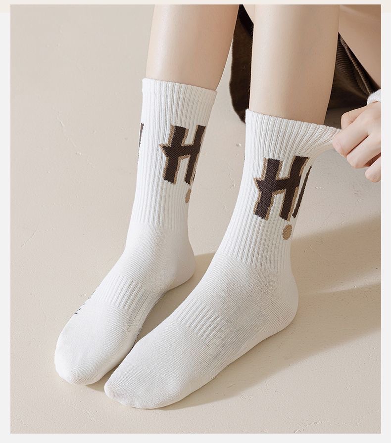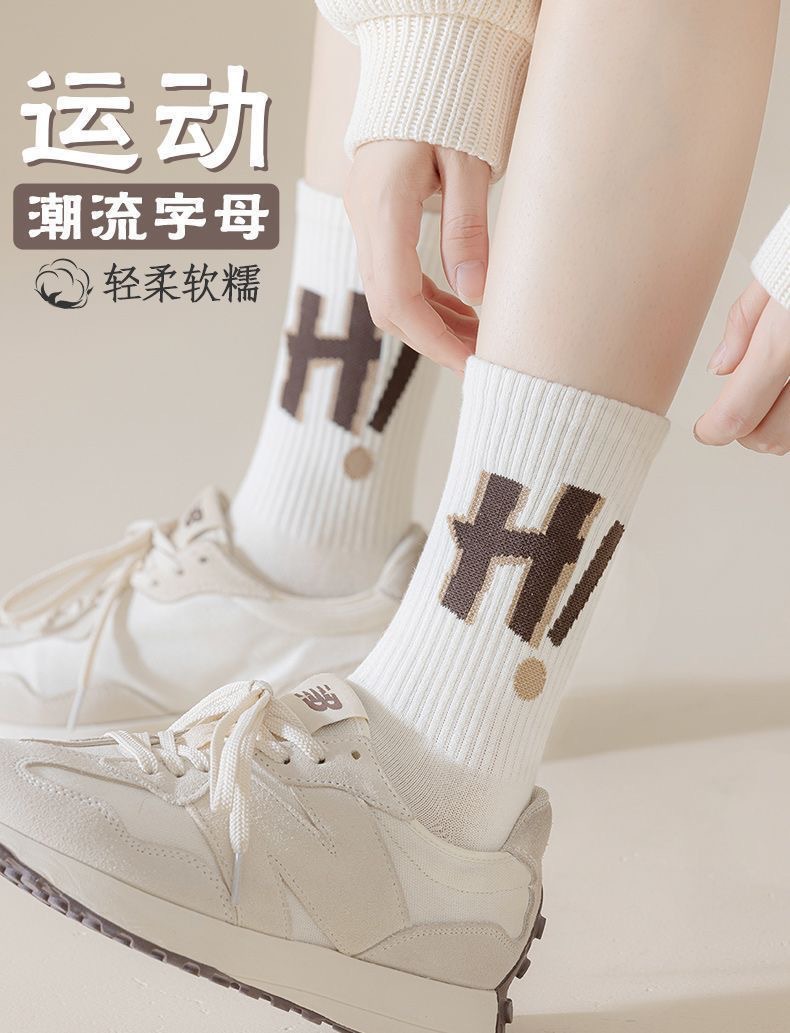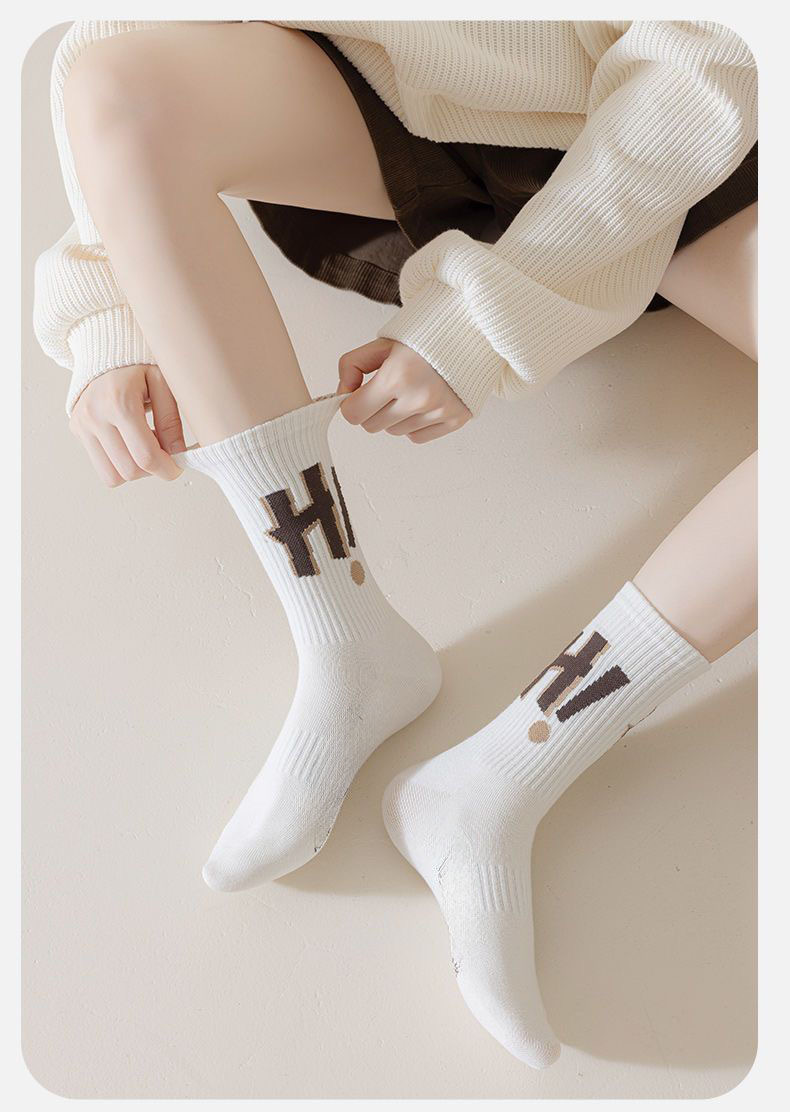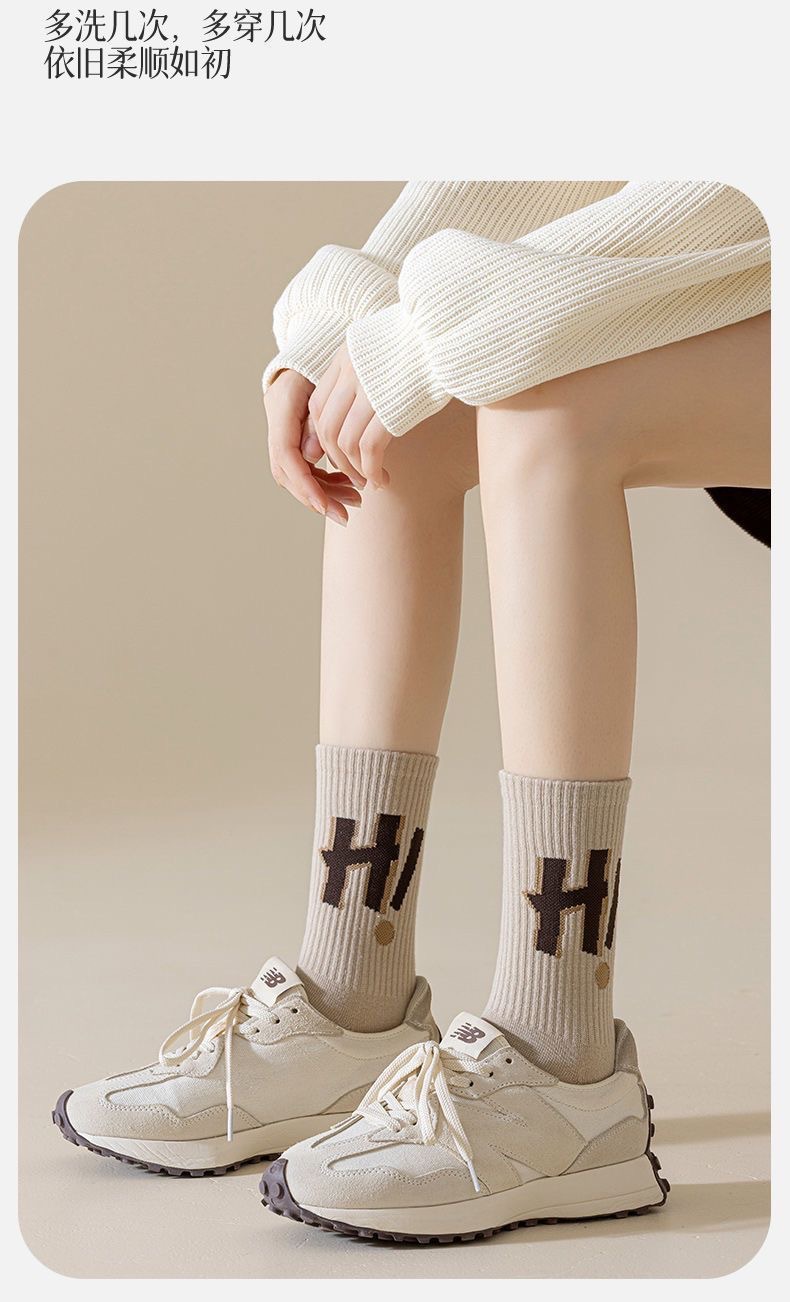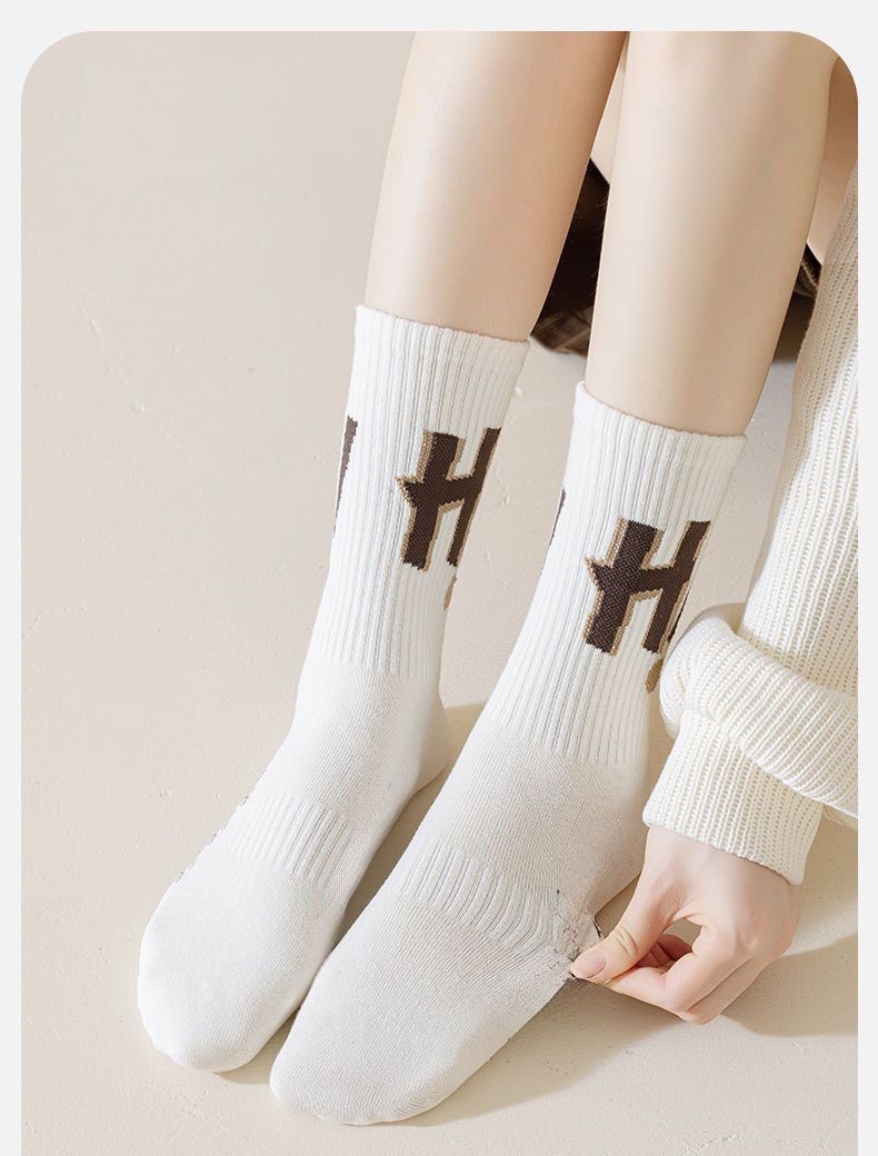 Zhuji ソックス レディース オールシーズン ミッドカーフソックス スポーツ 万能 カジュアルソックス シャークタイツ Cレター 秋冬ストッキング