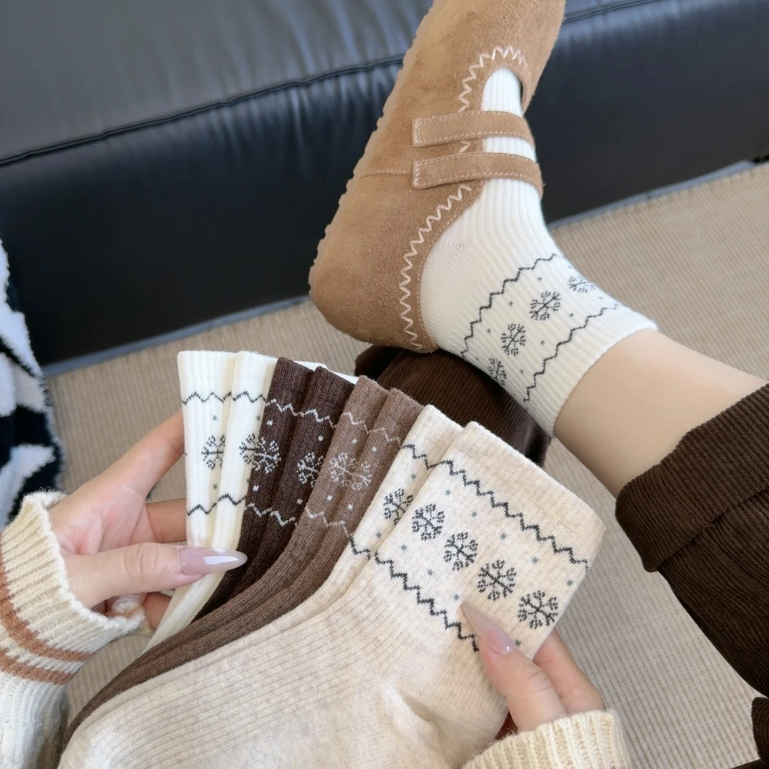 袜子女秋冬中筒袜复古雪花袜子ins费尔岛长筒棉袜百搭休闲堆堆袜