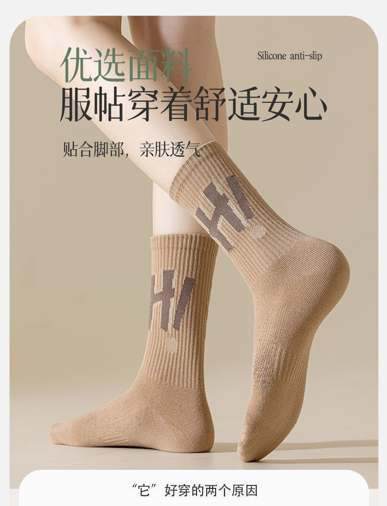秋冬新款女士中筒袜美拉德风条纹运动袜潮流百搭鲨鱼裤复古长筒袜