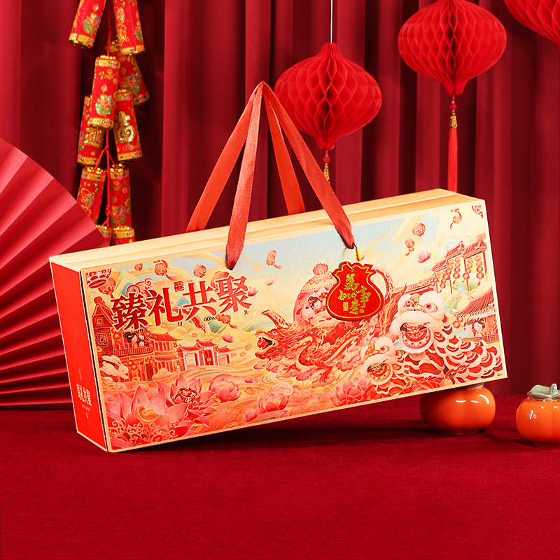 年货礼盒坚果包装盒礼盒国风手提瓦楞超大容量空礼盒子现货批发